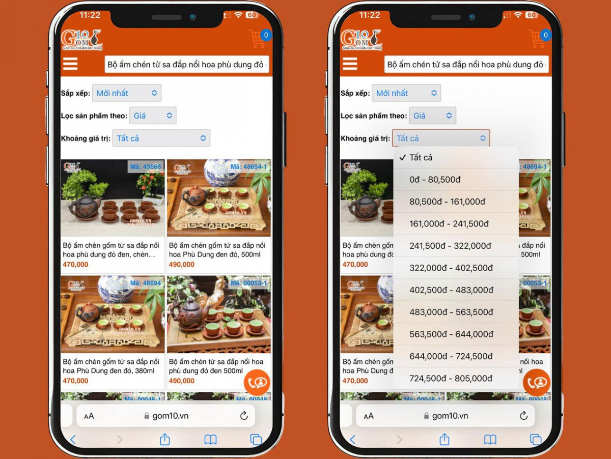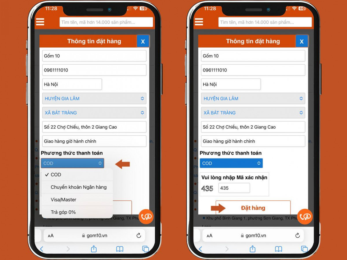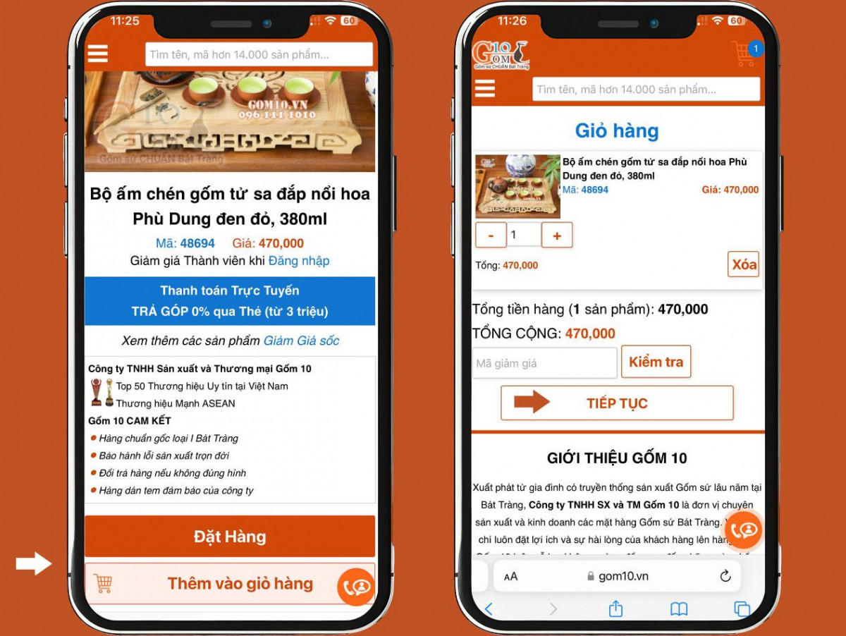 2.2 Đặt mua hàng trên website khi sử dụng điện thoại di động