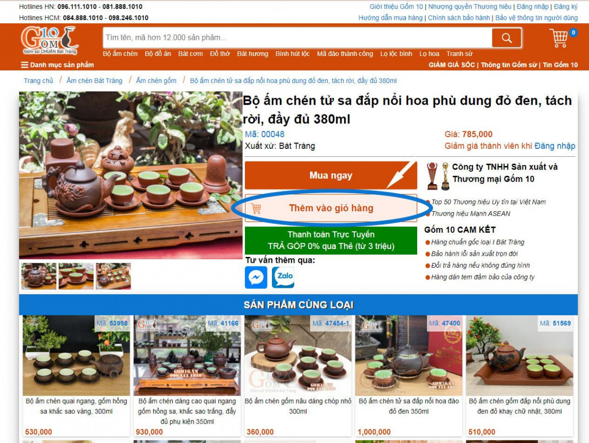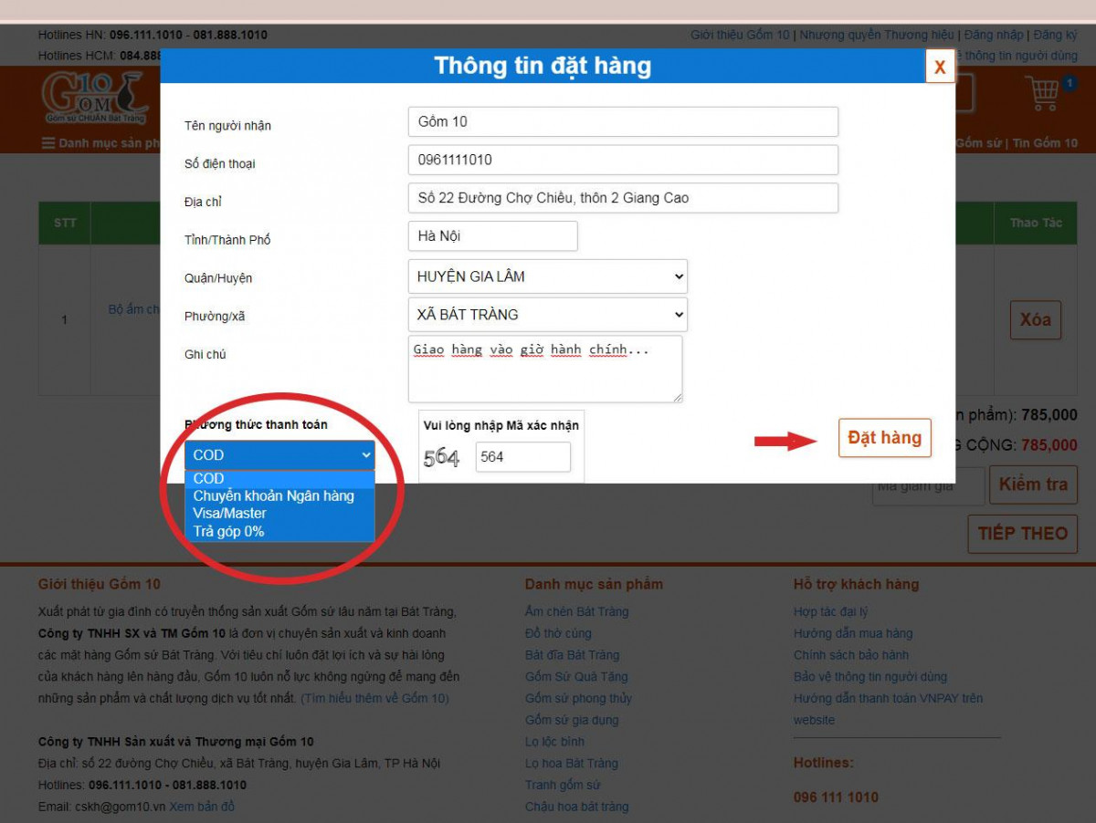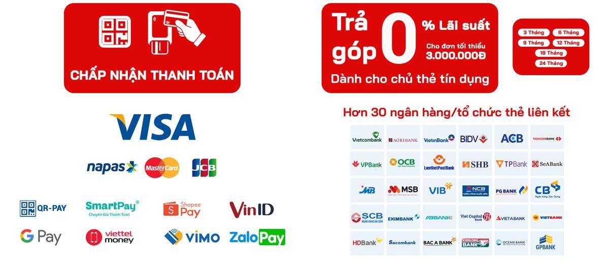 Hiện tại Gốm 10 đang hỗ trợ thanh toán bằng thẻ và trả góp 0% qua thẻ tín dụng. Quý khách có thể xem chi tiết cách thức và ưu đãi tại đây: