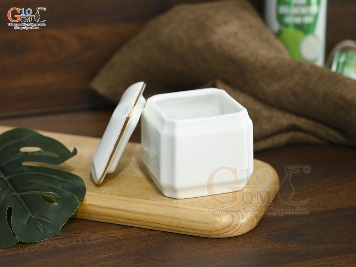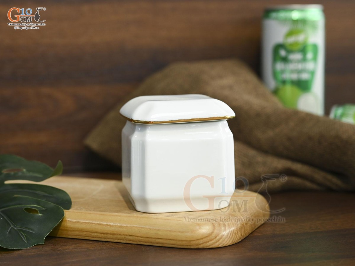 Bình đựng gia vị men trắng kẻ chỉ vàng kim