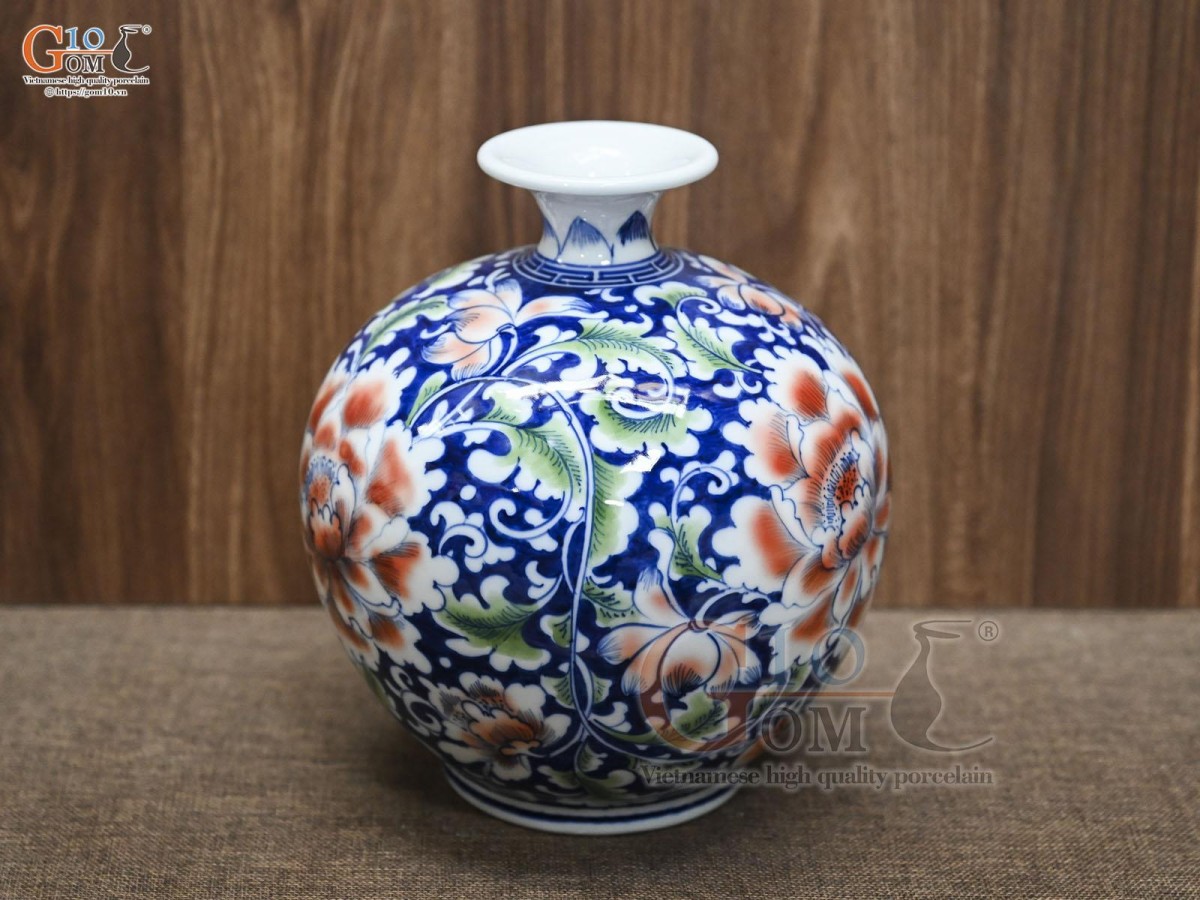 Bình hút lộc men màu, cảnh Sớm Nở Vinh Hoa, cao 25cm