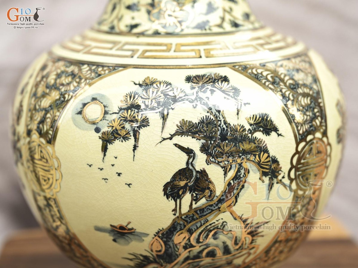 Bình gốm sứ Bát Tràng được làm thủ công 100% bằng đất sét nung ở nhiệt độ cao tại làng gốm Bát Tràng. Hiện nay, bình gốm sứ bát tràng ngày càng được nhiều người tìm mua khi hiểu được ý nghĩa phong thủy không hề nhỏ của nó.