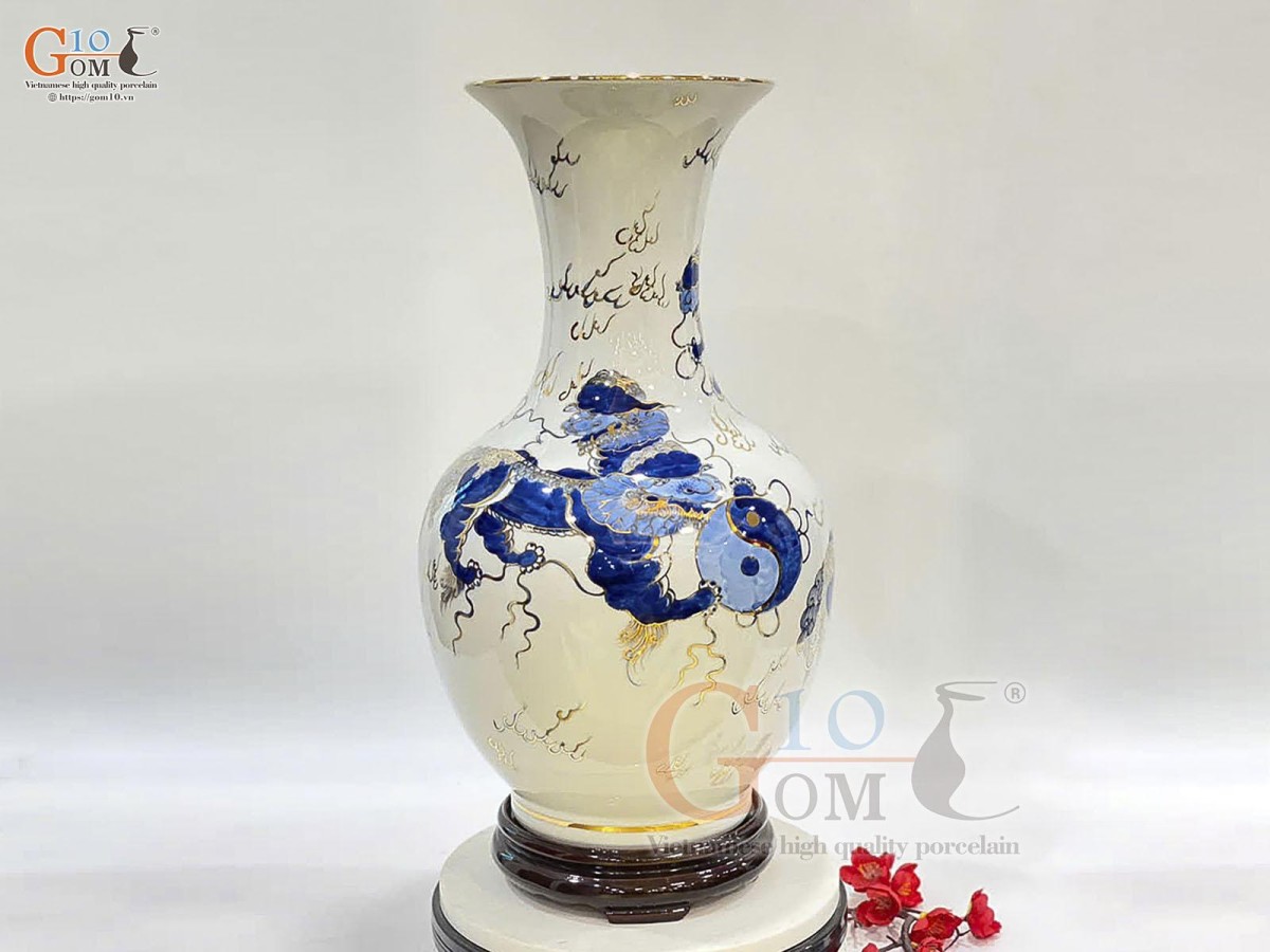 Bình gốm sứ Bát Tràng được làm thủ công 100% bằng đất sét nung ở nhiệt độ cao tại làng gốm Bát Tràng. Hiện nay, bình gốm sứ bát tràng ngày càng được nhiều người tìm mua khi hiểu được ý nghĩa phong thủy không hề nhỏ của nó.