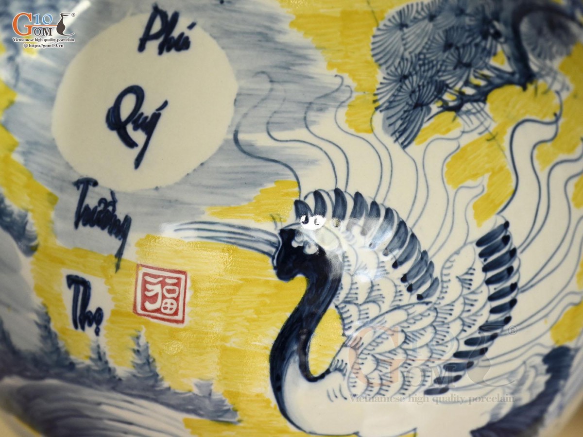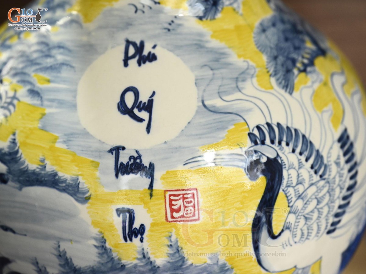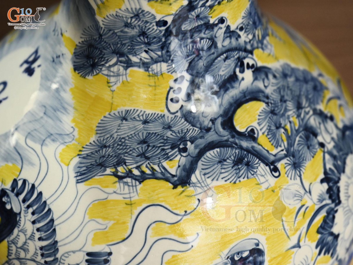 Bình gốm sứ Bát Tràng được làm thủ công 100% bằng đất sét nung ở nhiệt độ cao tại làng gốm Bát Tràng. Hiện nay, bình gốm sứ bát tràng ngày càng được nhiều người tìm mua khi hiểu được ý nghĩa phong thủy không hề nhỏ của nó.
