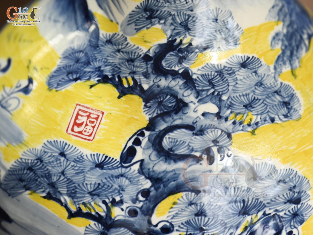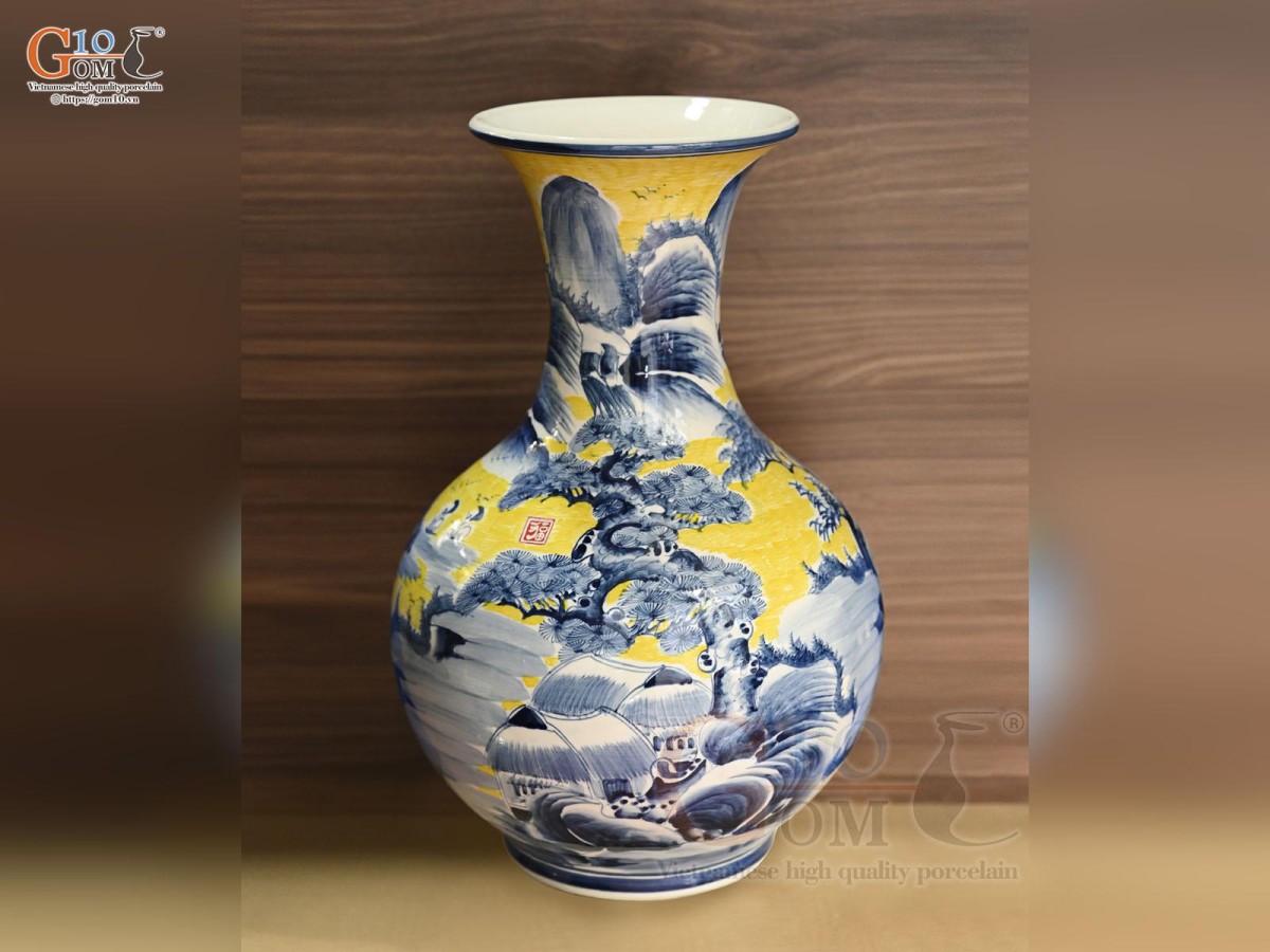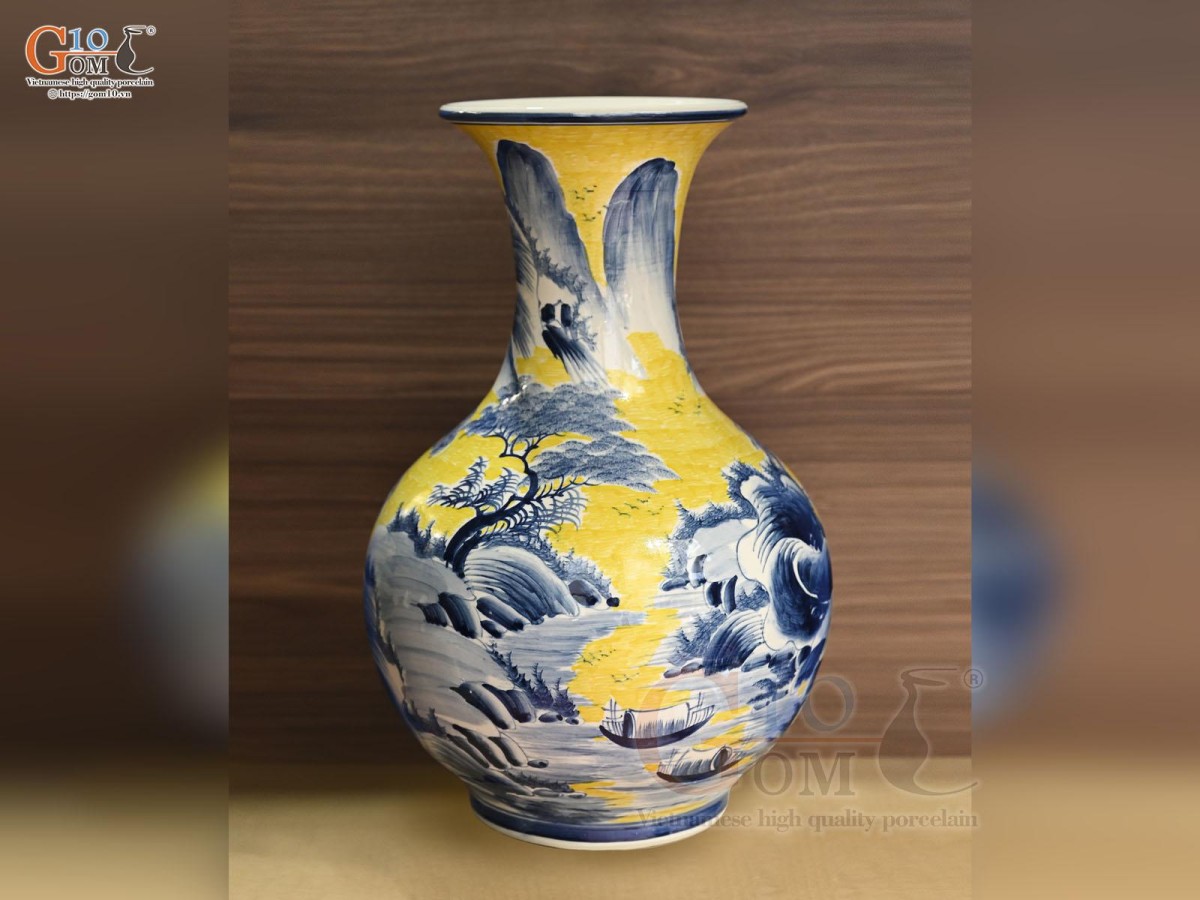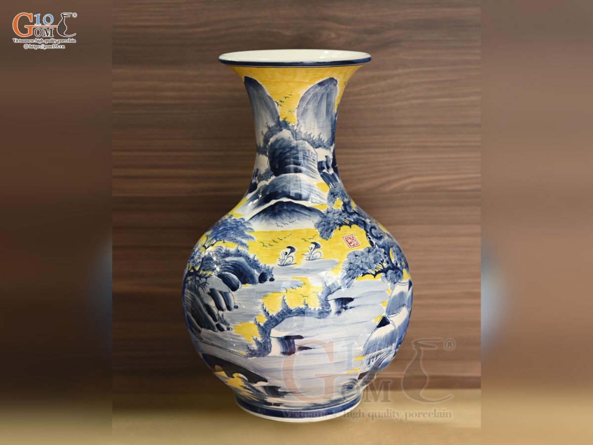 Bình gốm sứ Bát Tràng được làm thủ công 100% bằng đất sét nung ở nhiệt độ cao tại làng gốm Bát Tràng. Hiện nay, bình gốm sứ bát tràng ngày càng được nhiều người tìm mua khi hiểu được ý nghĩa phong thủy không hề nhỏ của nó.