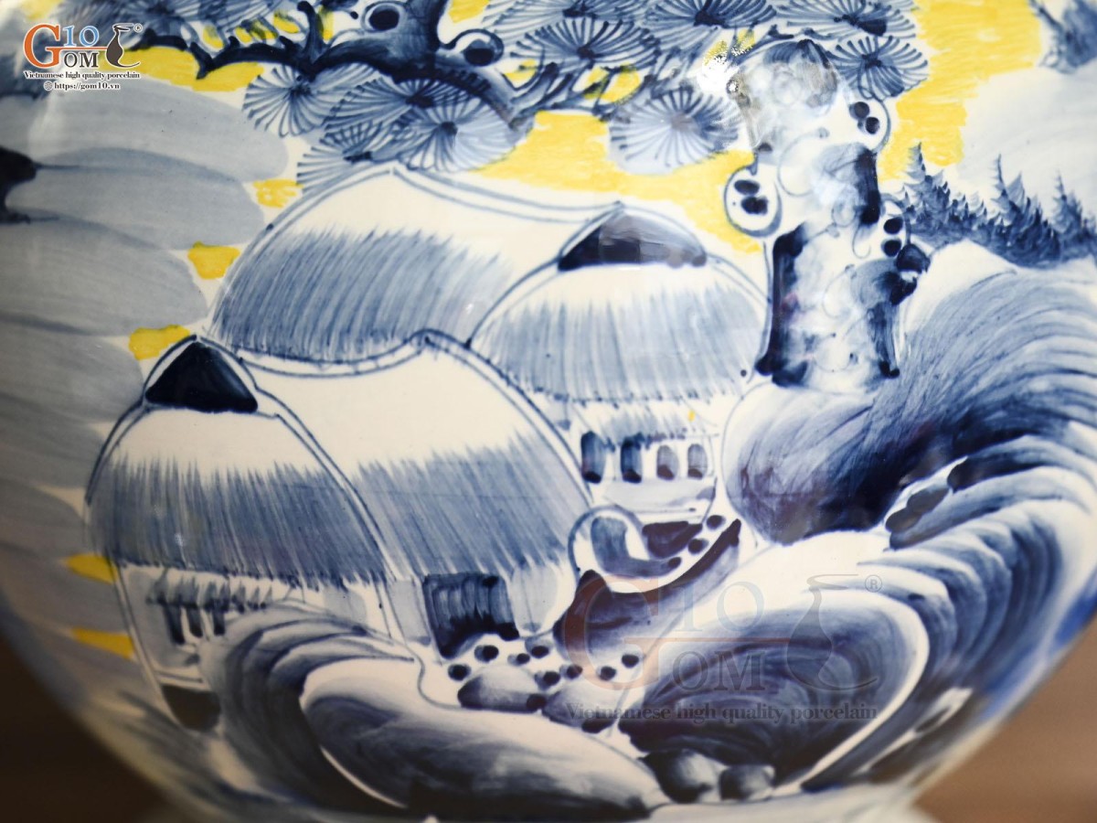Bình tỏi men màu vẽ cảnh Sơn Thuỷ Hữu Tình, cao 52cm |
