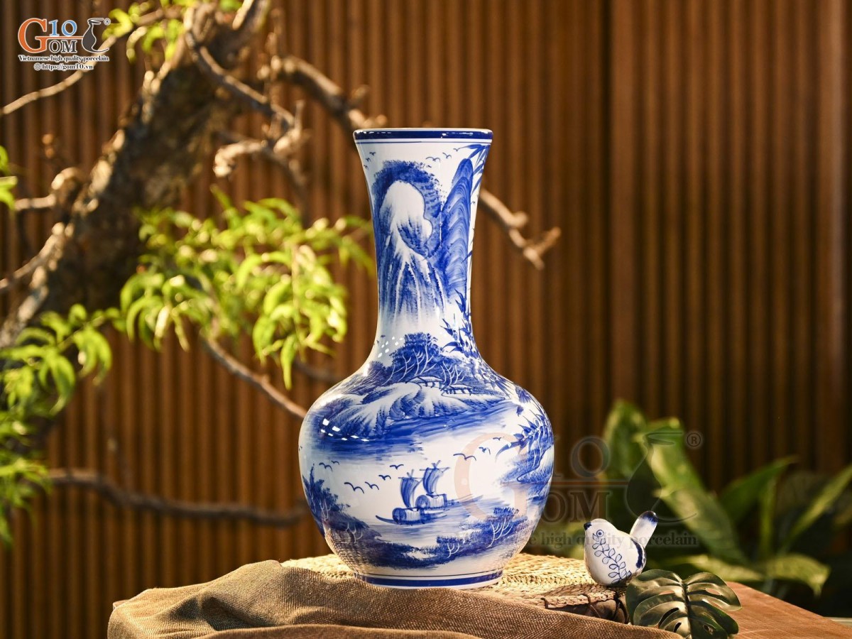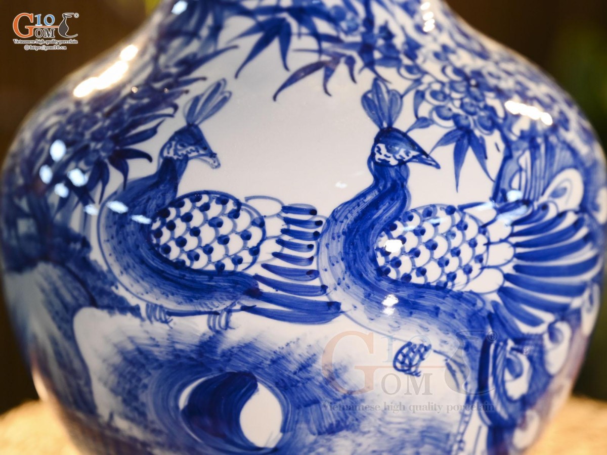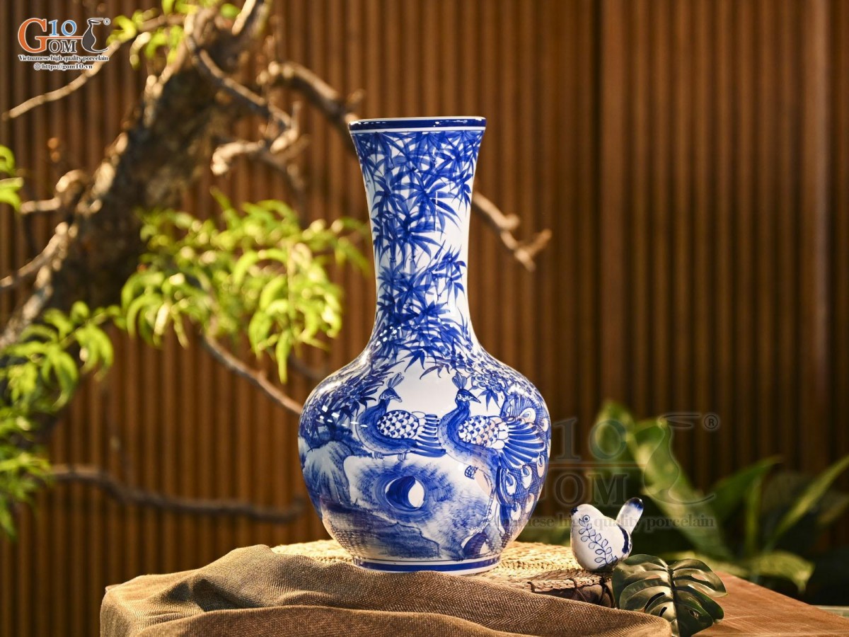 Bình gốm sứ Bát Tràng được làm thủ công 100% bằng đất sét nung ở nhiệt độ cao tại làng gốm Bát Tràng. Hiện nay, bình gốm sứ bát tràng ngày càng được nhiều người tìm mua khi hiểu được ý nghĩa phong thủy không hề nhỏ của nó.