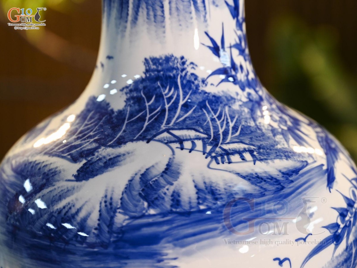 Bình tỏi men trắng vẽ Công Trúc Sơn Thủy, cao 45cm