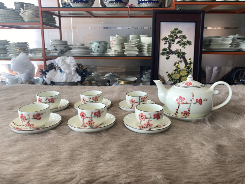 Bộ ấm trà gốm sứ Bát Tràng là một trong những sản phẩm gốm sứ được yêu thích nhất của Bát Tràng. Bộ ấm trà này được làm từ chất liệu đất sét cao cấp, được nung ở nhiệt độ cao nên có độ bền cao và khả năng giữ nhiệt tốt.