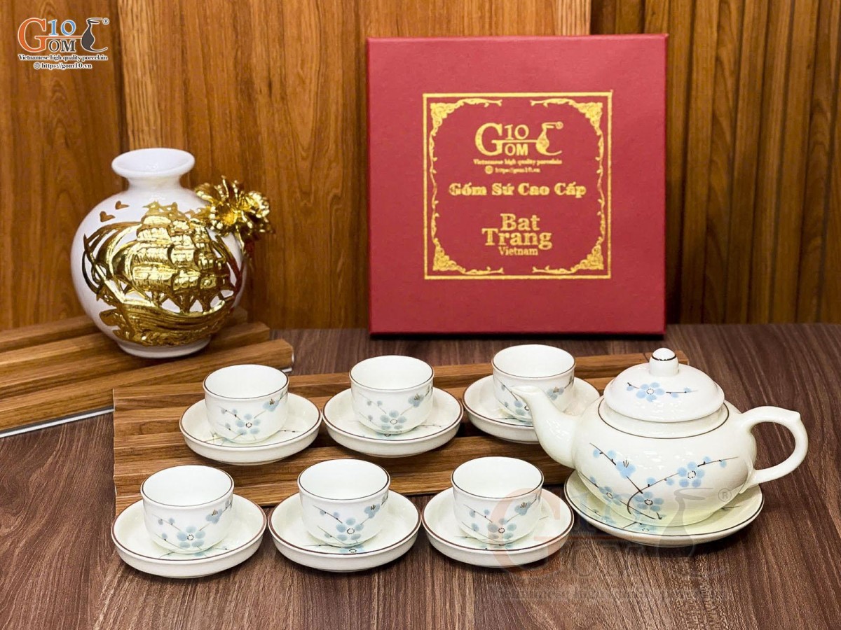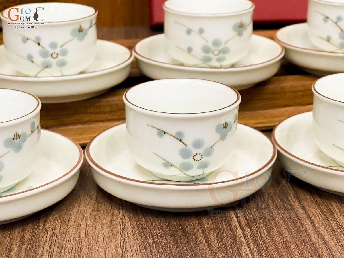 Nếu như dòng men vuốt, họa tiết chủ đạo là những loài hoa như hoa mai, hoa đào, hoa sen, chuồn chuồn lá khoai,… mang những nét cổ điển thổi hồn lên sản phẩm sự hoài cổ nhẹ nhàng thì ấm chén men kem lại mang đến sự hiện đại, thanh lịch.