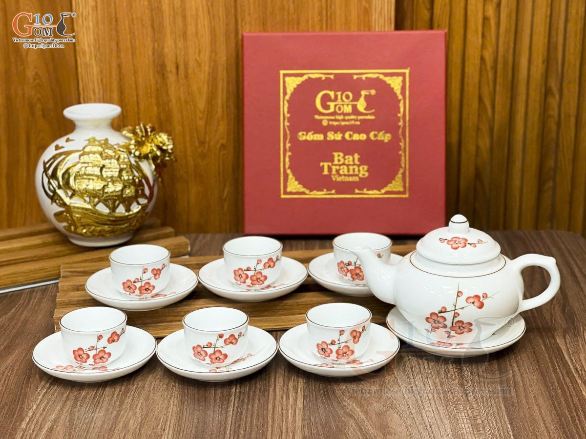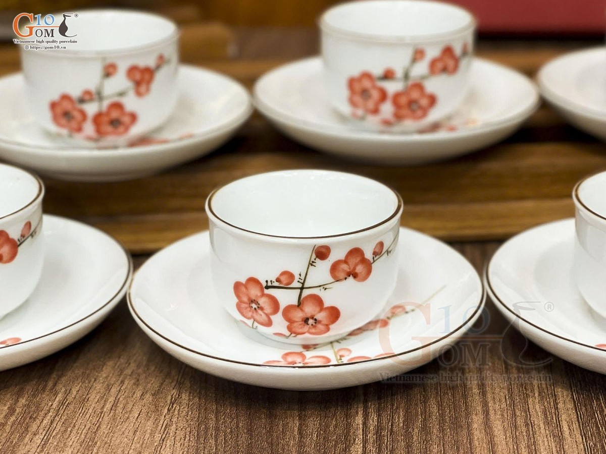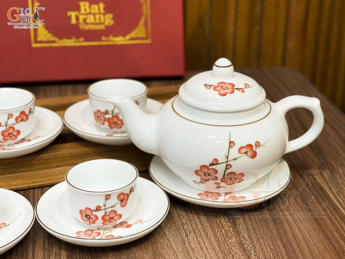 Nếu như dòng men vuốt, họa tiết chủ đạo là những loài hoa như hoa mai, hoa đào, hoa sen, chuồn chuồn lá khoai,… mang những nét cổ điển thổi hồn lên sản phẩm sự hoài cổ nhẹ nhàng thì ấm chén men kem lại mang đến sự hiện đại, thanh lịch.