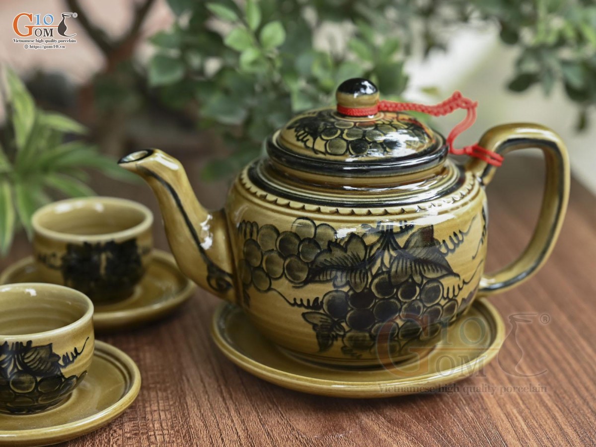 Họa tiết chủ đạo của dòng sản phẩm ấm chén men màu là được vẽ tay hay khắc chìm hoa văn thủ công: