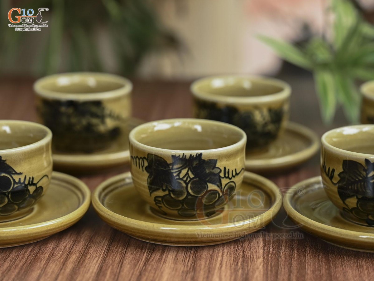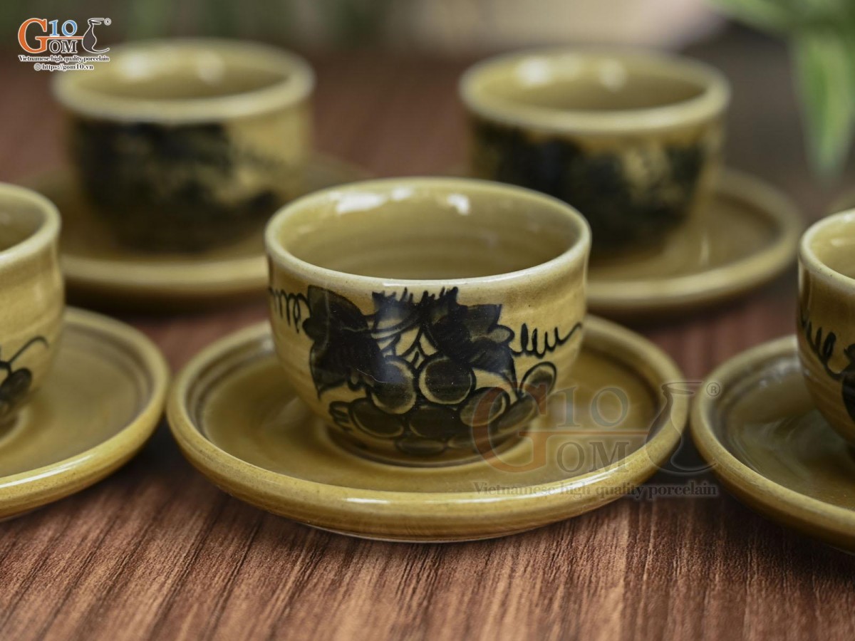 Nếu như dòng men vuốt, họa tiết chủ đạo là những loài hoa như hoa mai, hoa đào, hoa sen, chuồn chuồn lá khoai,… mang những nét cổ điển thổi hồn lên sản phẩm sự hoài cổ nhẹ nhàng thì ấm chén men kem lại mang đến sự hiện đại, thanh lịch.