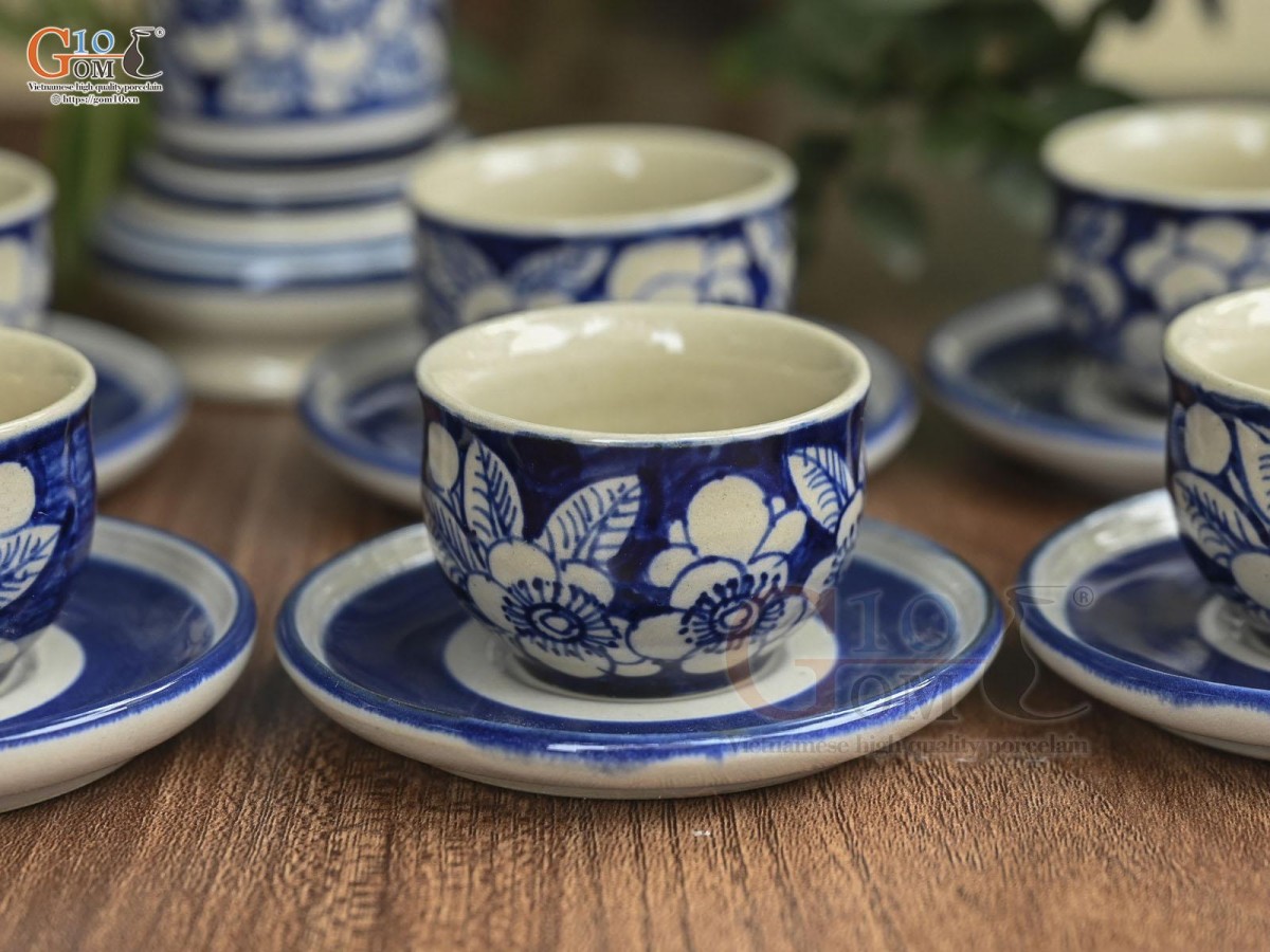 Họa tiết chủ đạo của dòng sản phẩm ấm chén men màu là được vẽ tay hay khắc chìm hoa văn thủ công: