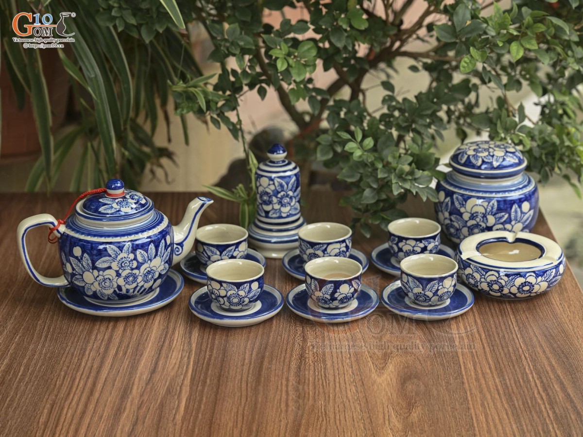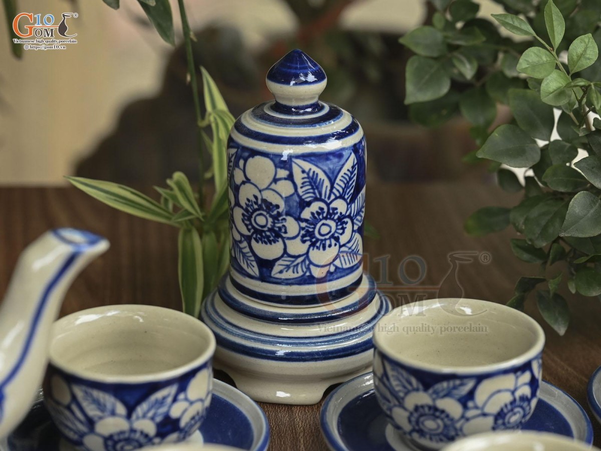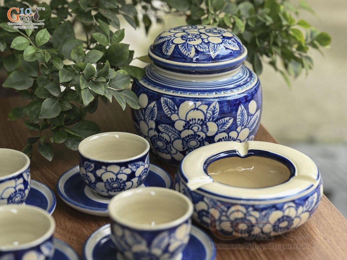 Lọ tăm men cổ vẽ hoa xanh lam |