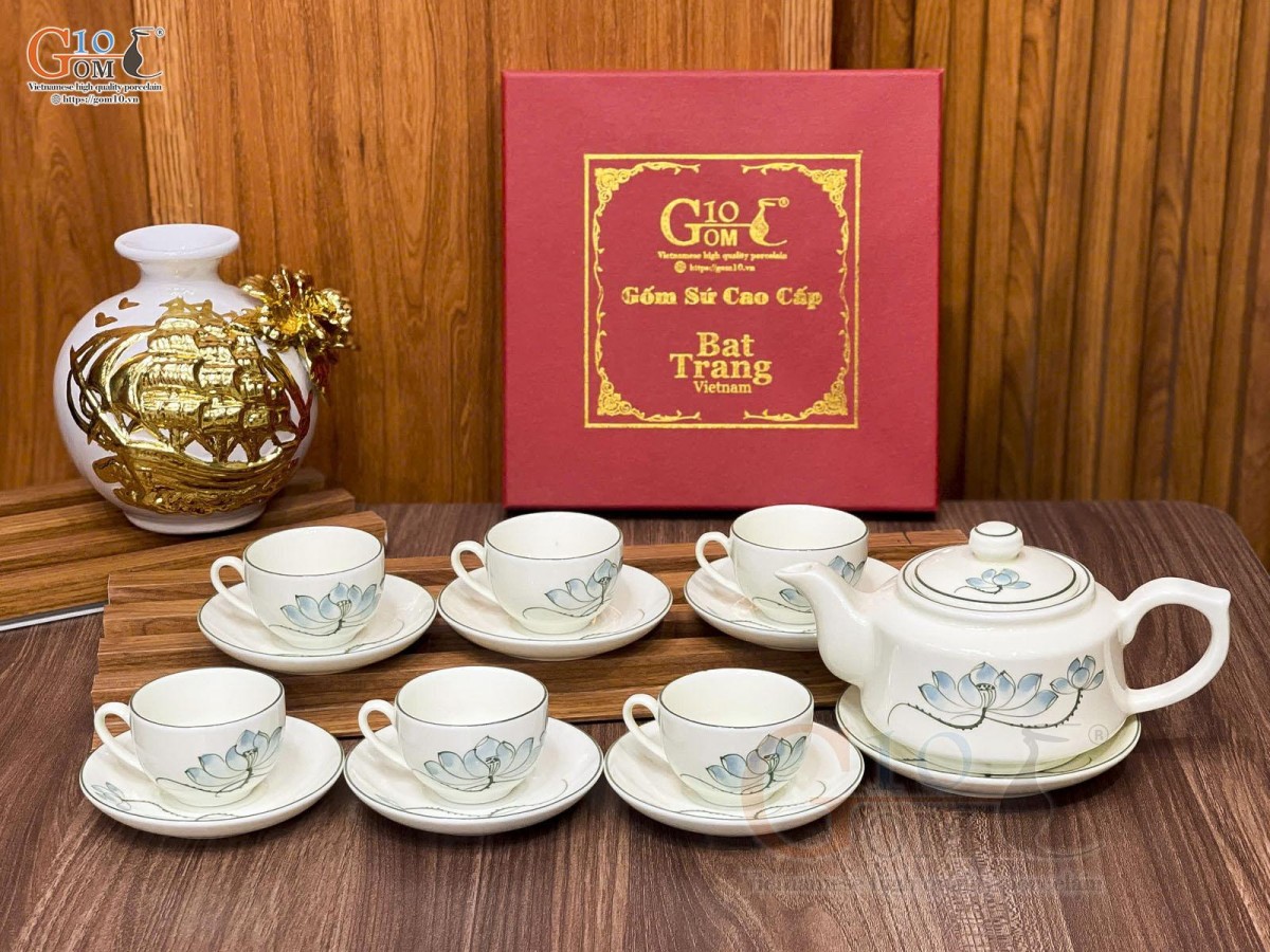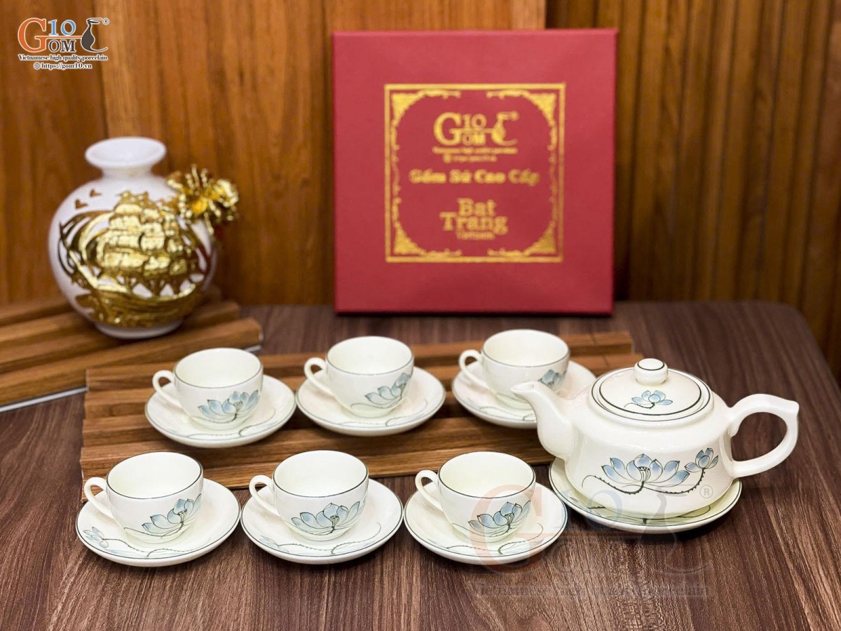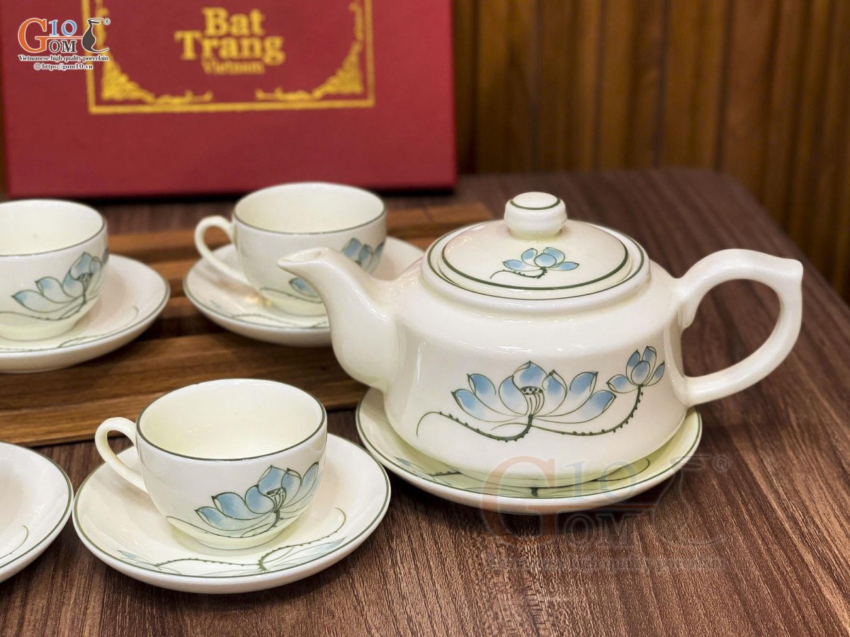 Nếu như dòng men vuốt, họa tiết chủ đạo là những loài hoa như hoa mai, hoa đào, hoa sen, chuồn chuồn lá khoai,… mang những nét cổ điển thổi hồn lên sản phẩm sự hoài cổ nhẹ nhàng thì ấm chén men kem lại mang đến sự hiện đại, thanh lịch.