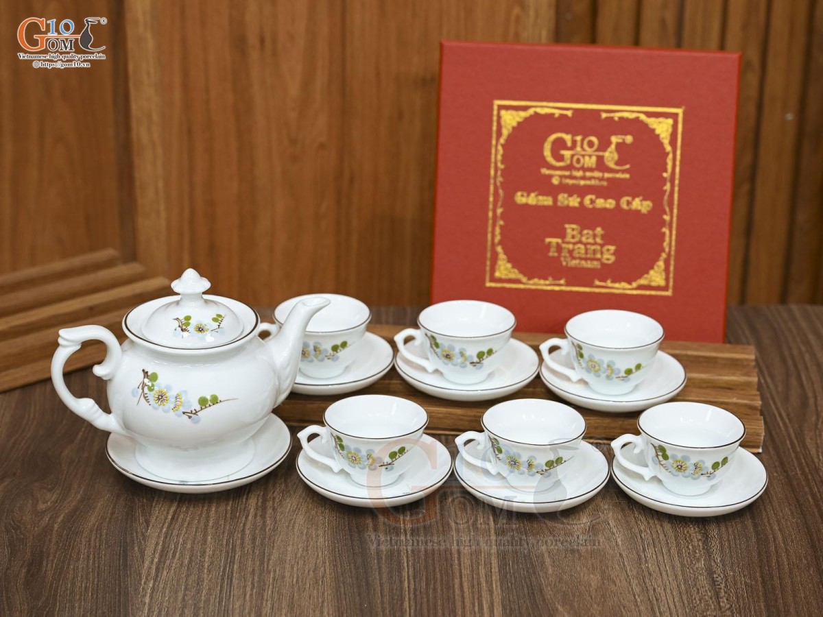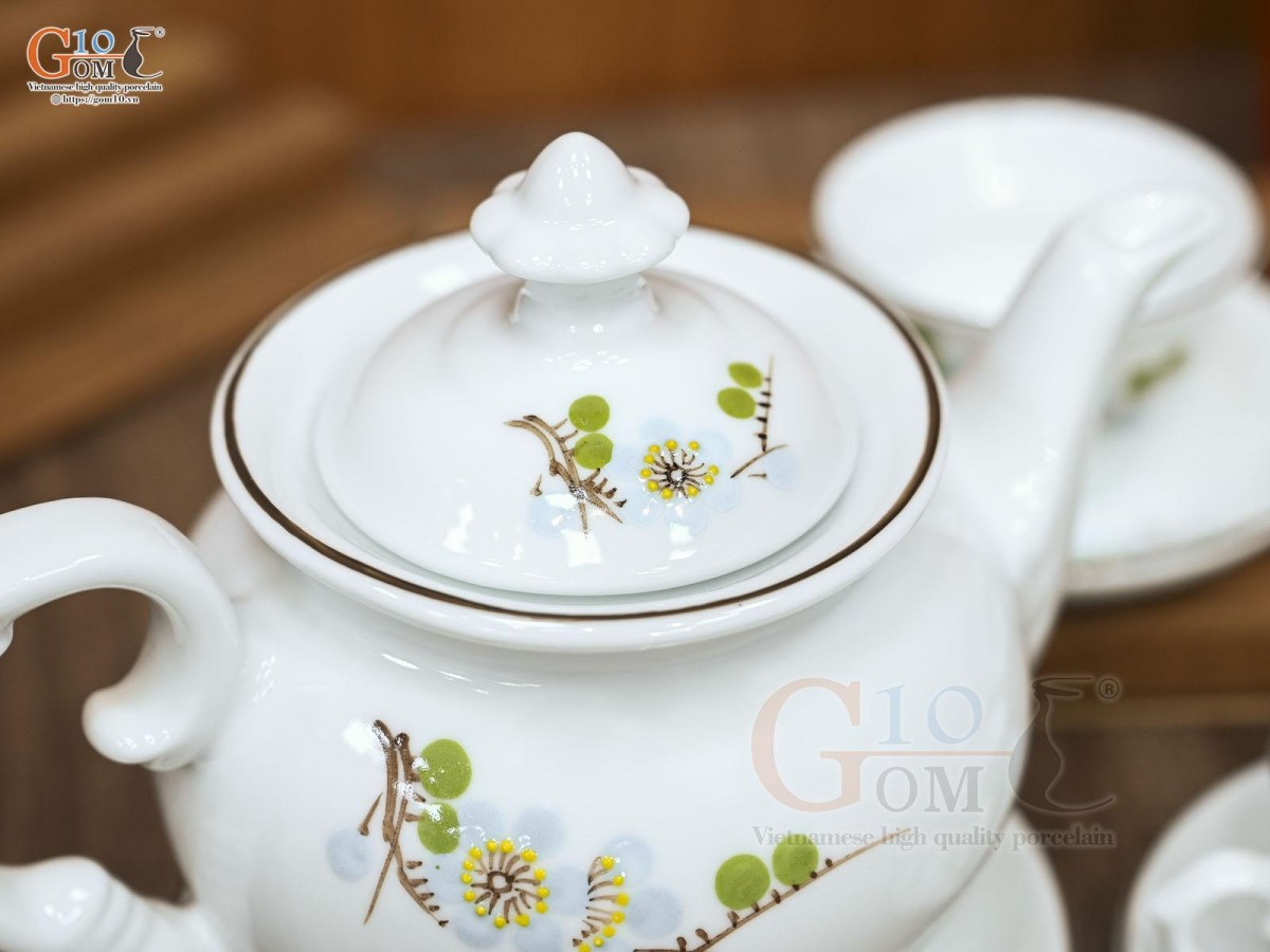 Nếu như dòng men vuốt, họa tiết chủ đạo là những loài hoa như hoa mai, hoa đào, hoa sen, chuồn chuồn lá khoai,… mang những nét cổ điển thổi hồn lên sản phẩm sự hoài cổ nhẹ nhàng thì ấm chén men kem lại mang đến sự hiện đại, thanh lịch.