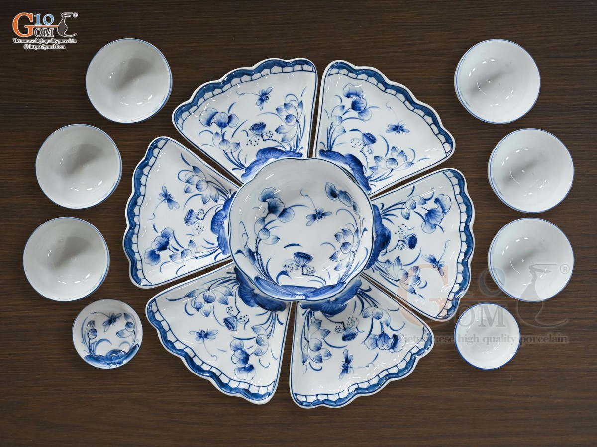 Gốm 10 - Gốm sứ chuẩn Bát Tràng giới thiệu đến quý khách hàng bộ đĩa ăn Bát Tràng cao cấp , cam kết chất lượng với các đặc tính nổi bật như chịu va đập mạnh , khó bể , sứt mẻ , chống trầy xước , vệ sinh dễ dàng .