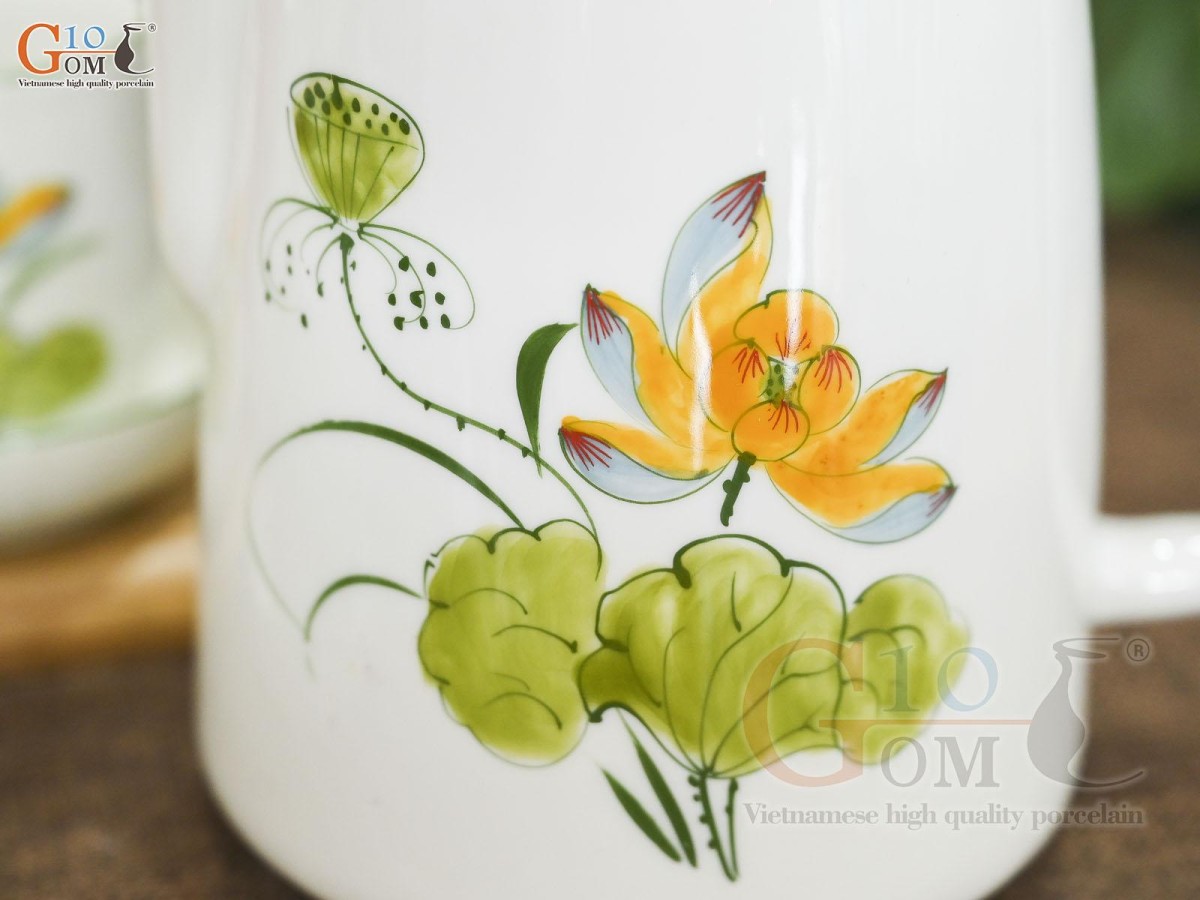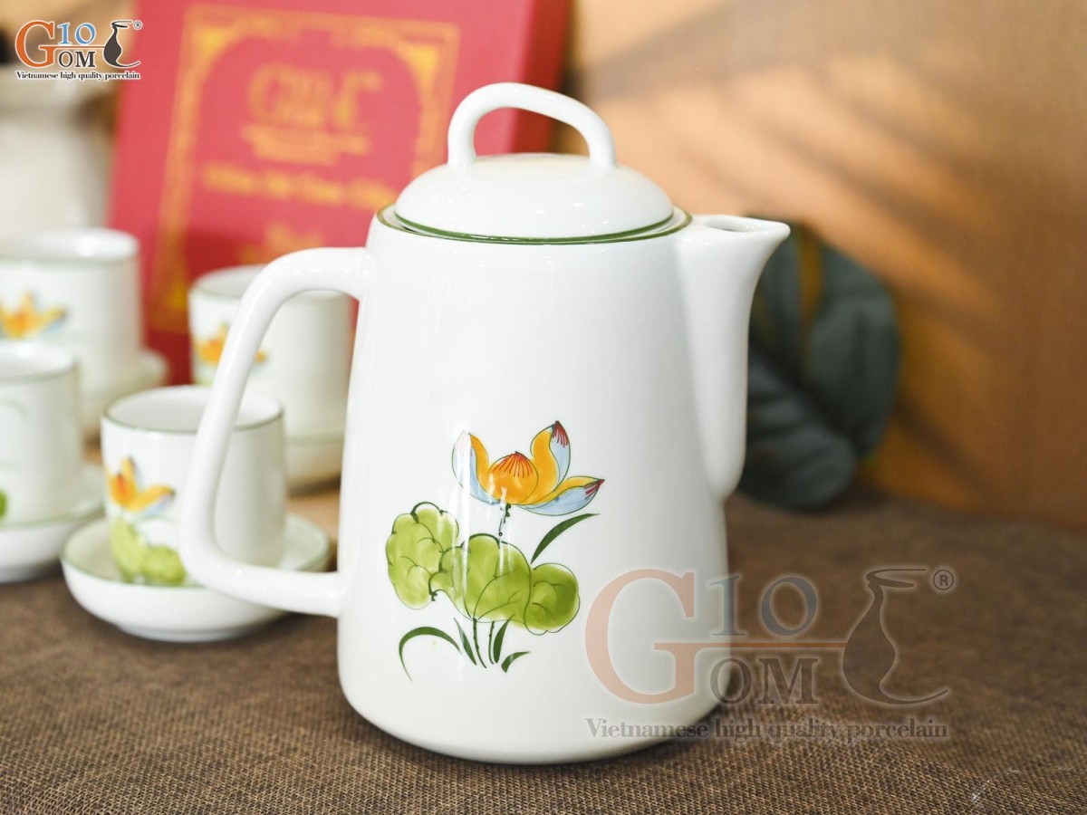 Họa tiết chủ đạo của dòng sản phẩm ấm chén men màu là được vẽ tay hay khắc chìm hoa văn thủ công: