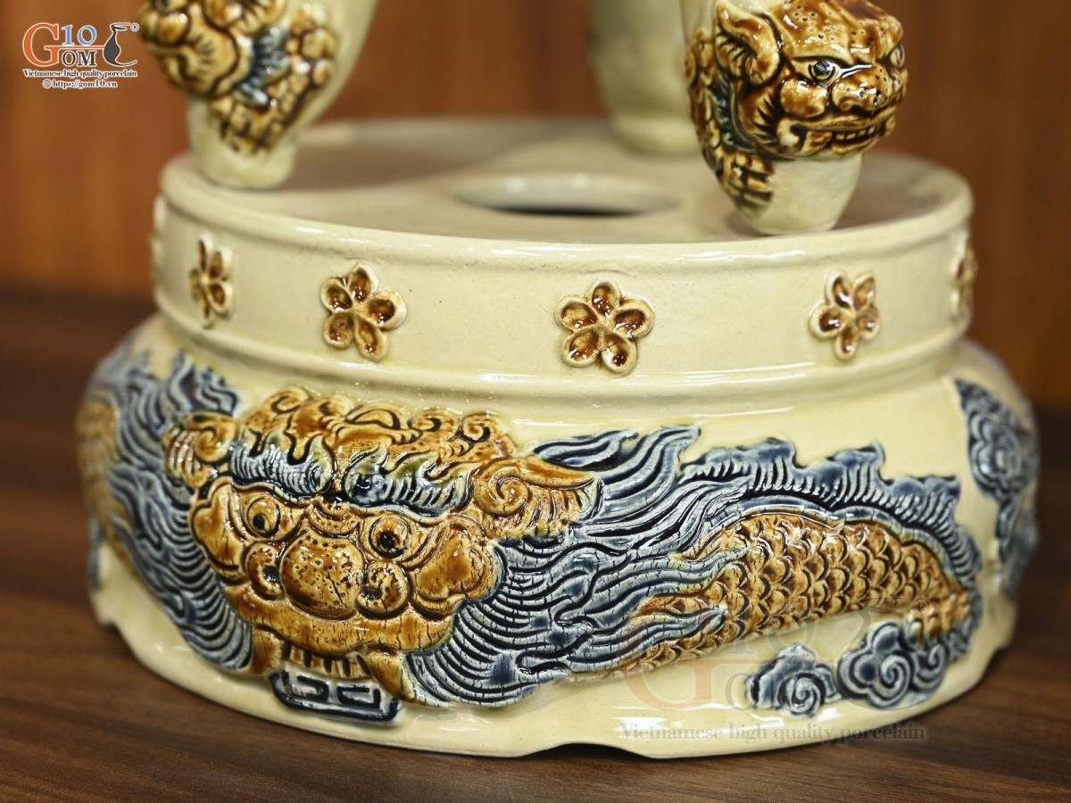Bộ đỉnh sứ thường bao gồm: Đỉnh sứ, đôi chân nến hoặc đôi hạc đứng trên lưng rùa. Tuy nhiên, các gia đình thường chọn đôi hạc thờ để sử dụng cho không gian thờ cúng bởi chúng sở hữu giá trị tâm linh, phong thủy sâu sắc. Theo phong thủy, hình tượng hạc cưỡi lưng rùa tượng trưng cho những điều tốt đẹp, cho mong ước truyền lại cho người đời sau.