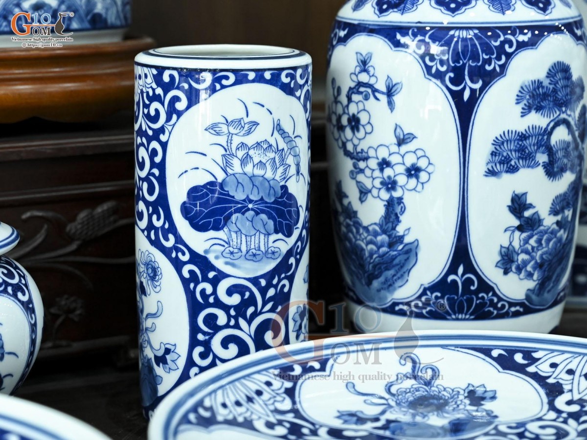Ống hương men trắng họa tiết Tứ Cảnh Tài Lộc, cao 20cm |