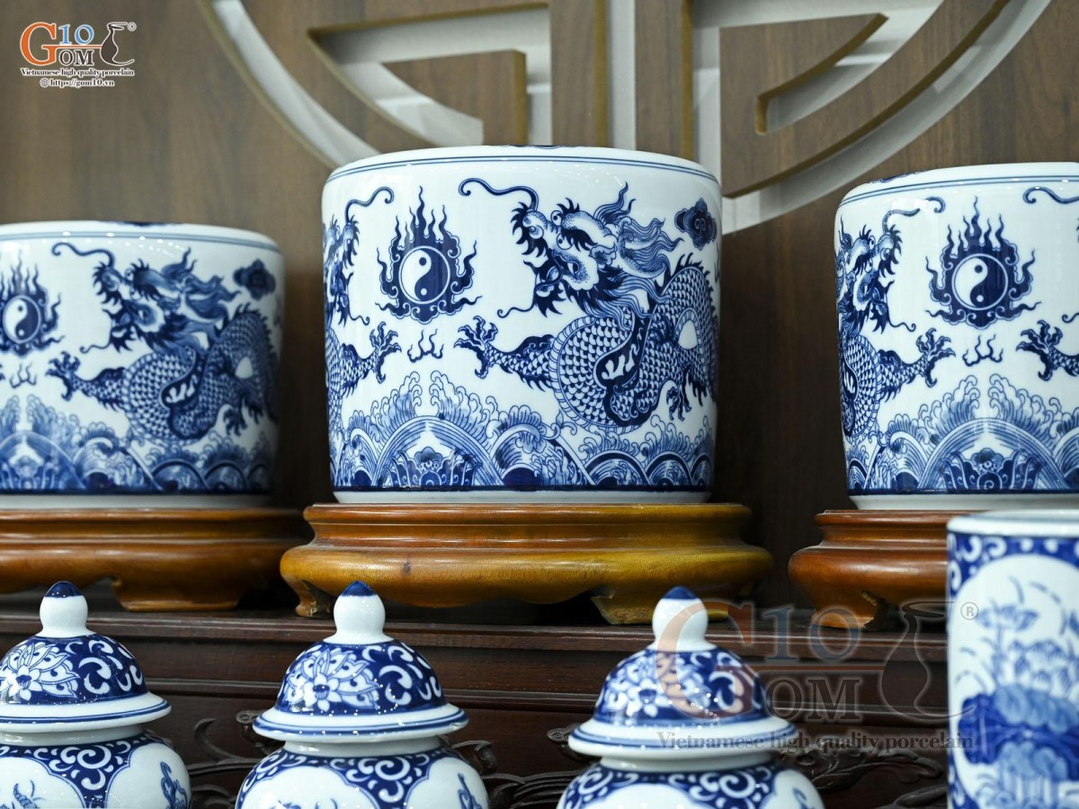 Bát hương men trắng họa tiết Rồng Ngũ Phúc, đường kính 20cm |