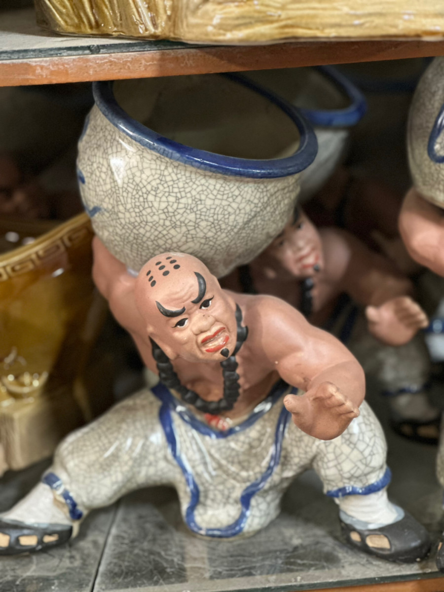 Chậu tượng trồng cây Lỗ Chí Thâm men rạn đỡ vò trên lưng, cao 30cm Chậu tượng trồng cây Lỗ Chí Thâm men rạn đỡ vò trên lưng, cao 30cm