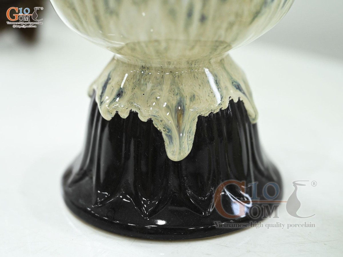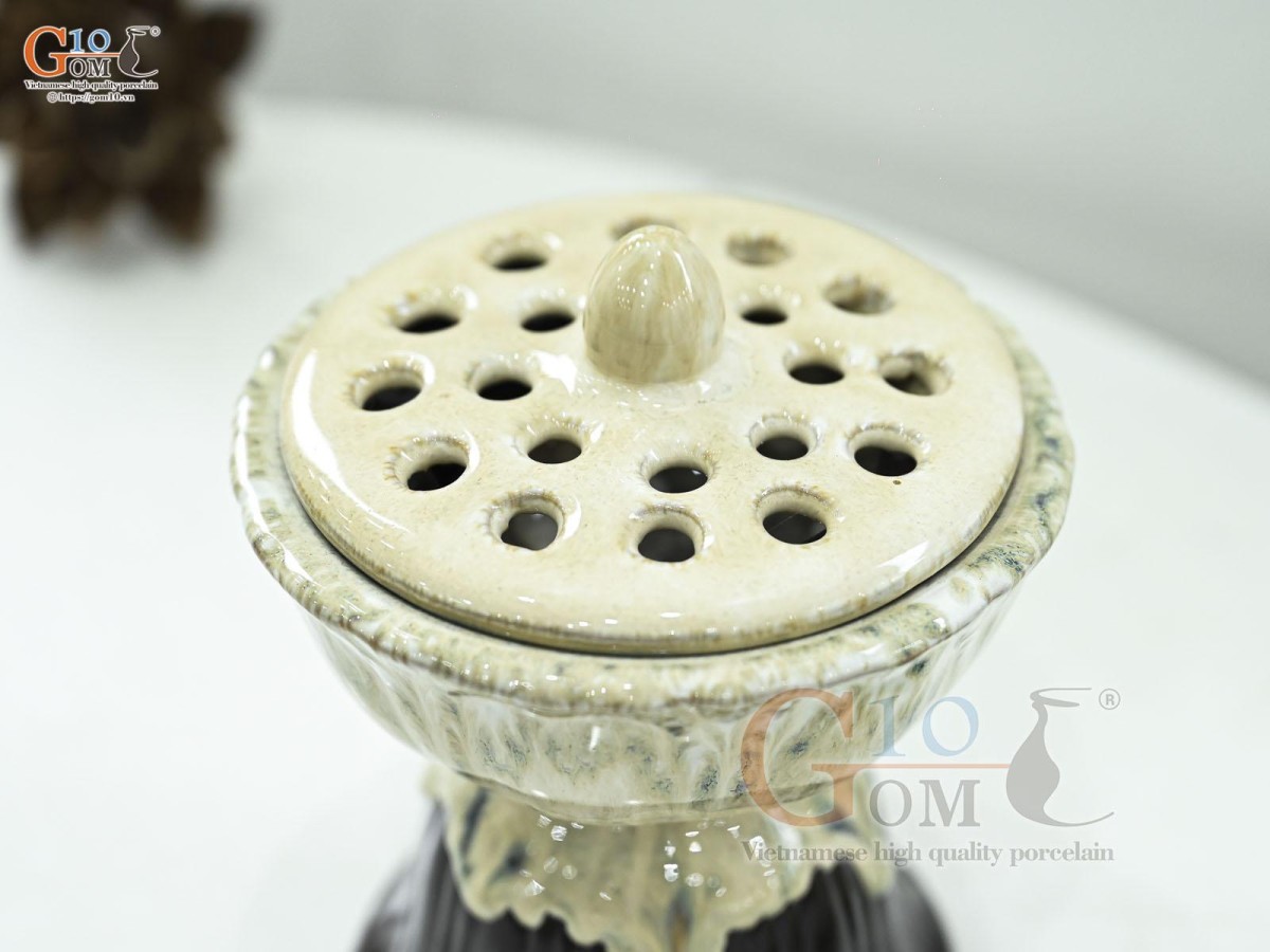 Đài sen men kem, cao 16cm
