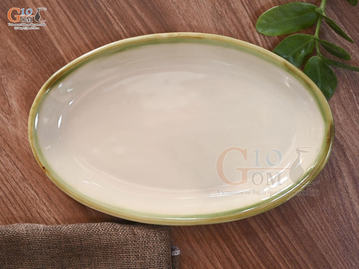 Gốm 10 xin giới thiệu đến quý khách các mẫu đĩa bầu dục dưới đây :