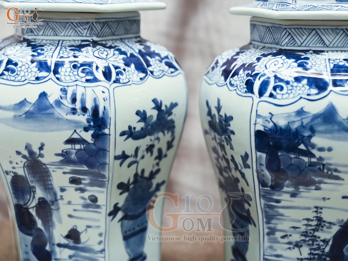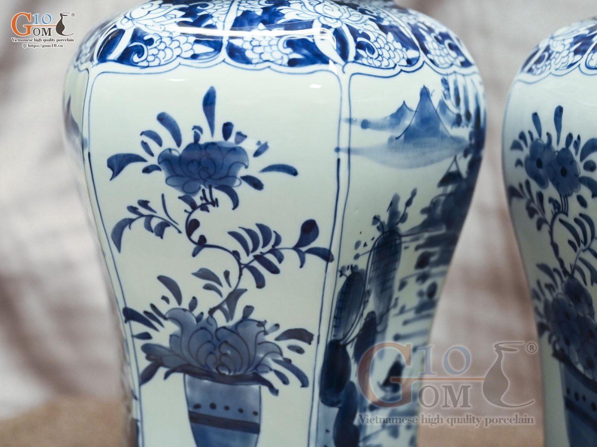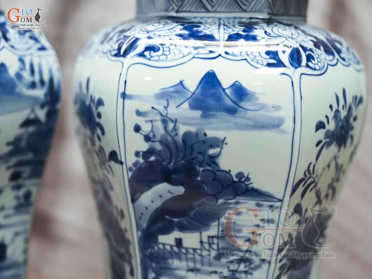 Chóe phổ biến có dòng men lam cổ vẽ tay, từng đường nét hài hòa, tinh tế từ chim hoa, rồng phượng cho đến phong cảnh hữu tính… Tất cả được người nghệ nhân thổi hồi vào sản phẩm.