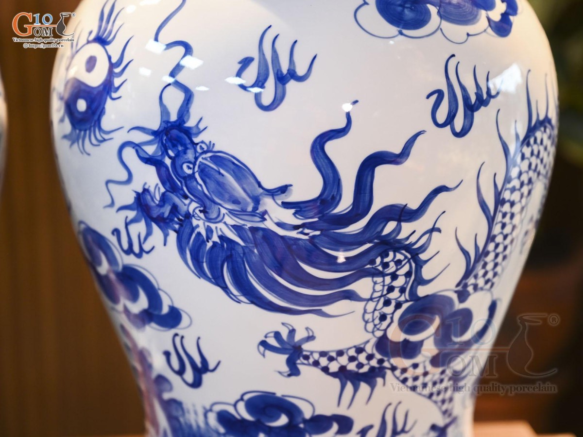 Chóe phổ biến có dòng men lam cổ vẽ tay, từng đường nét hài hòa, tinh tế từ chim hoa, rồng phượng cho đến phong cảnh hữu tính… Tất cả được người nghệ nhân thổi hồi vào sản phẩm.