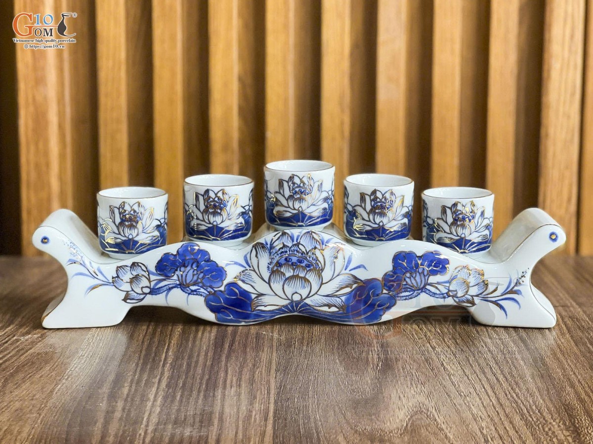 Kỷ ngai 5 men lam cổ vẽ hoa sen vẽ vàng kim Kỷ ngai 5 men lam cổ vẽ hoa sen vẽ vàng kim
