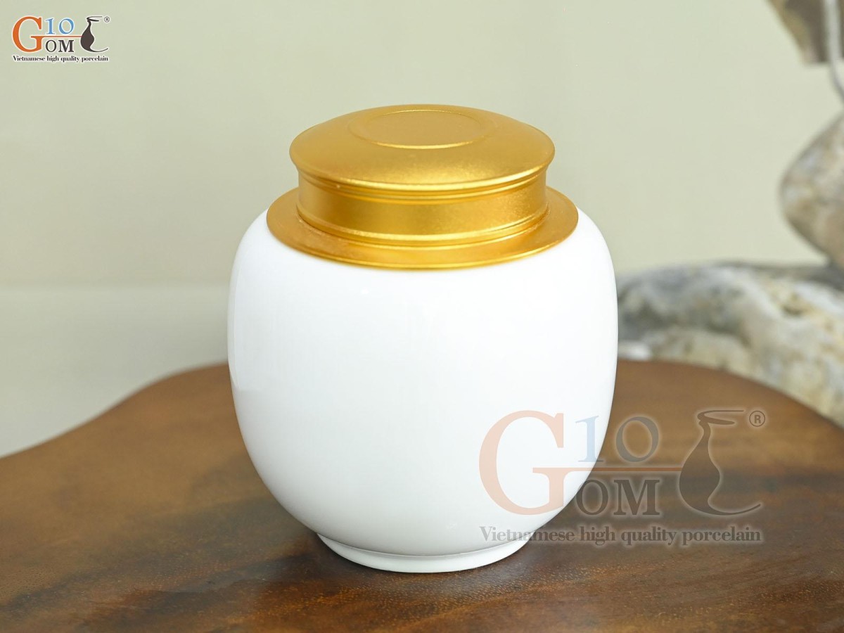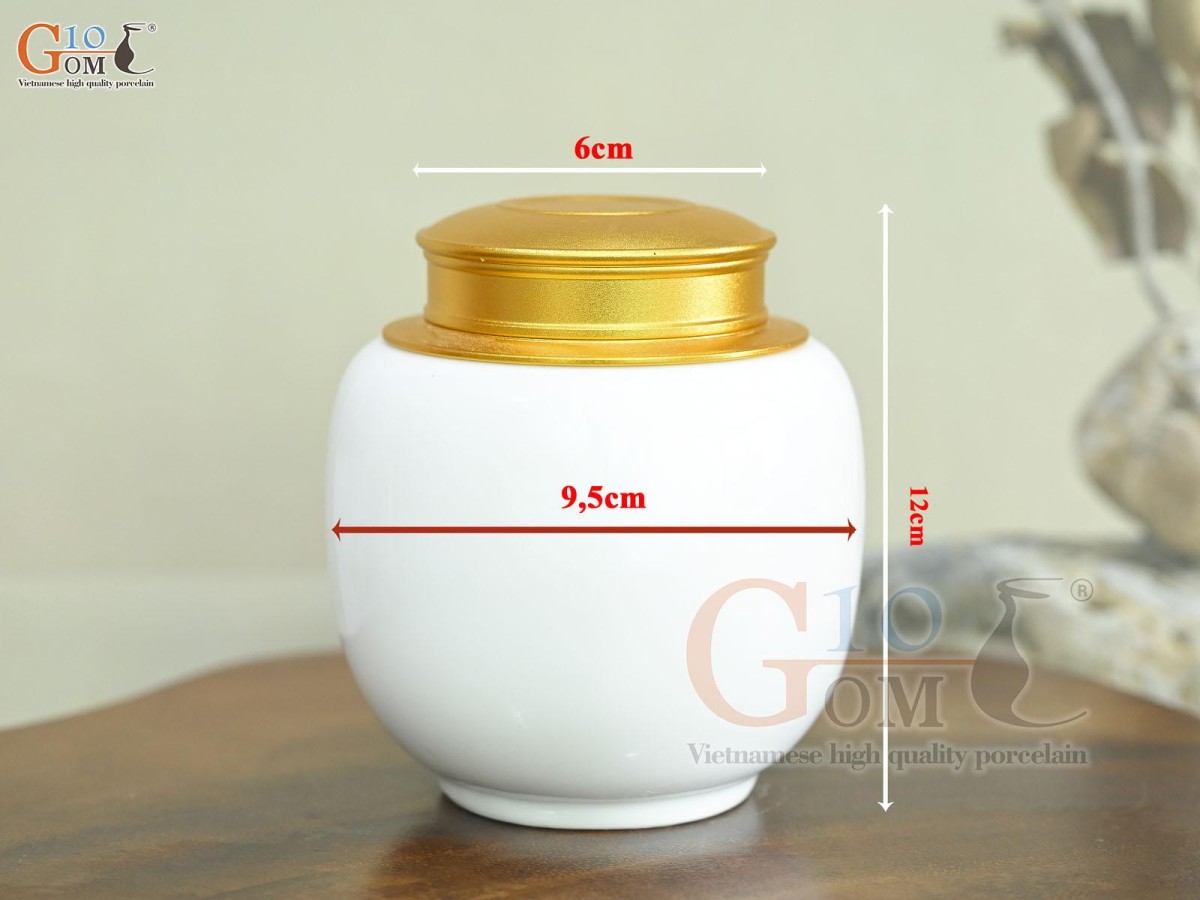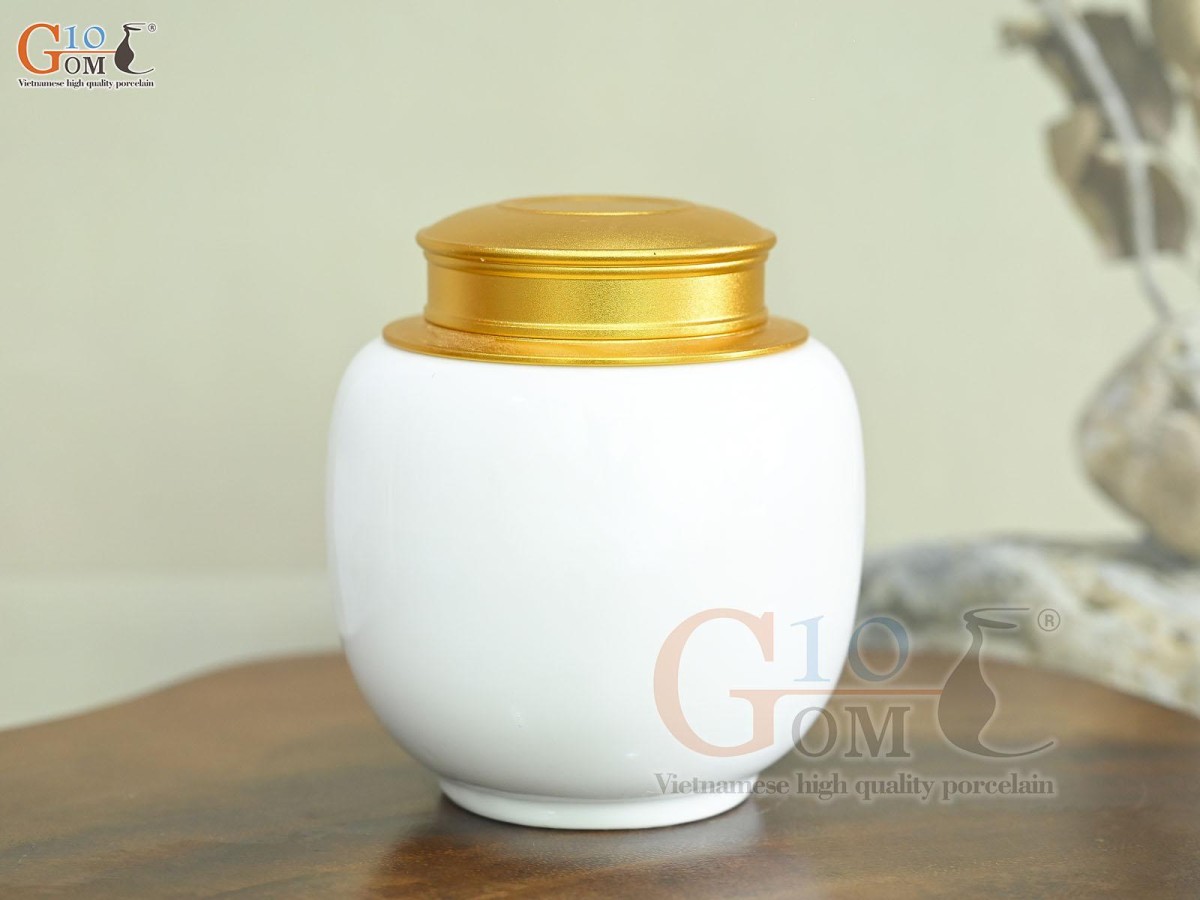 Lọ chè trơn dáng thấp nền trắng, 150g