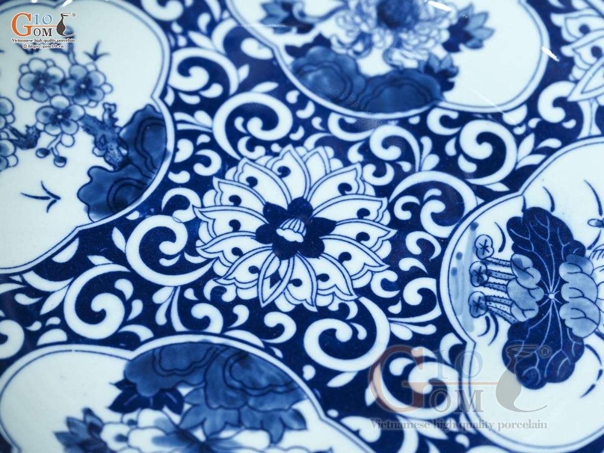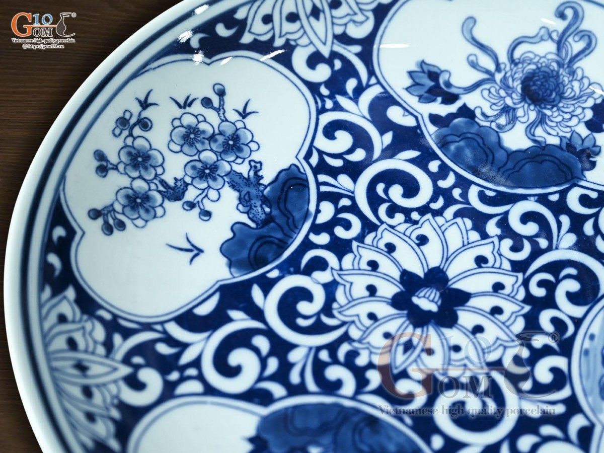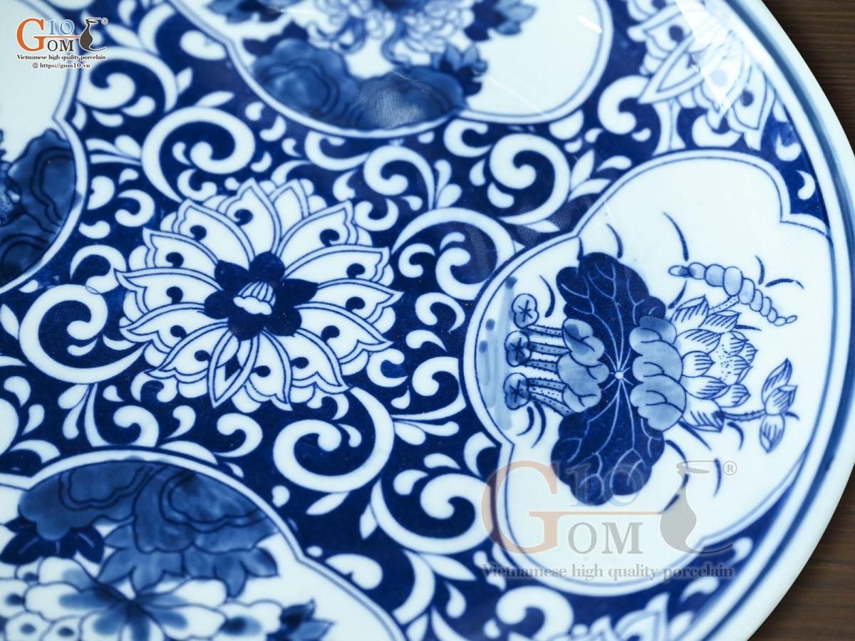 Đặc biệt, các loại mâm bồng hiện nay còn được thiết kế với nhiều loại họa tiết, hoa văn bắt mắt, ấn tượng như: Lưỡng Long Chầu Nguyệt, Chim hoa, hoa Sen hay Long Phụng Sum Vầy,…có thể được đắp nổi hoặc vẽ chìm trong xương gốm. Mỗi loại họa tiết được trang trí trên mâm bồng sẽ mang một ý nghĩa riêng, đặc biệt và độc đáo của nó. Vì vậy, sẽ không quá khó khăn để mỗi gia chủ có thể lựa chọn cho bàn thờ gia tiên nhà mình một chiếc mâm bồng phù hợp và ưng ý.