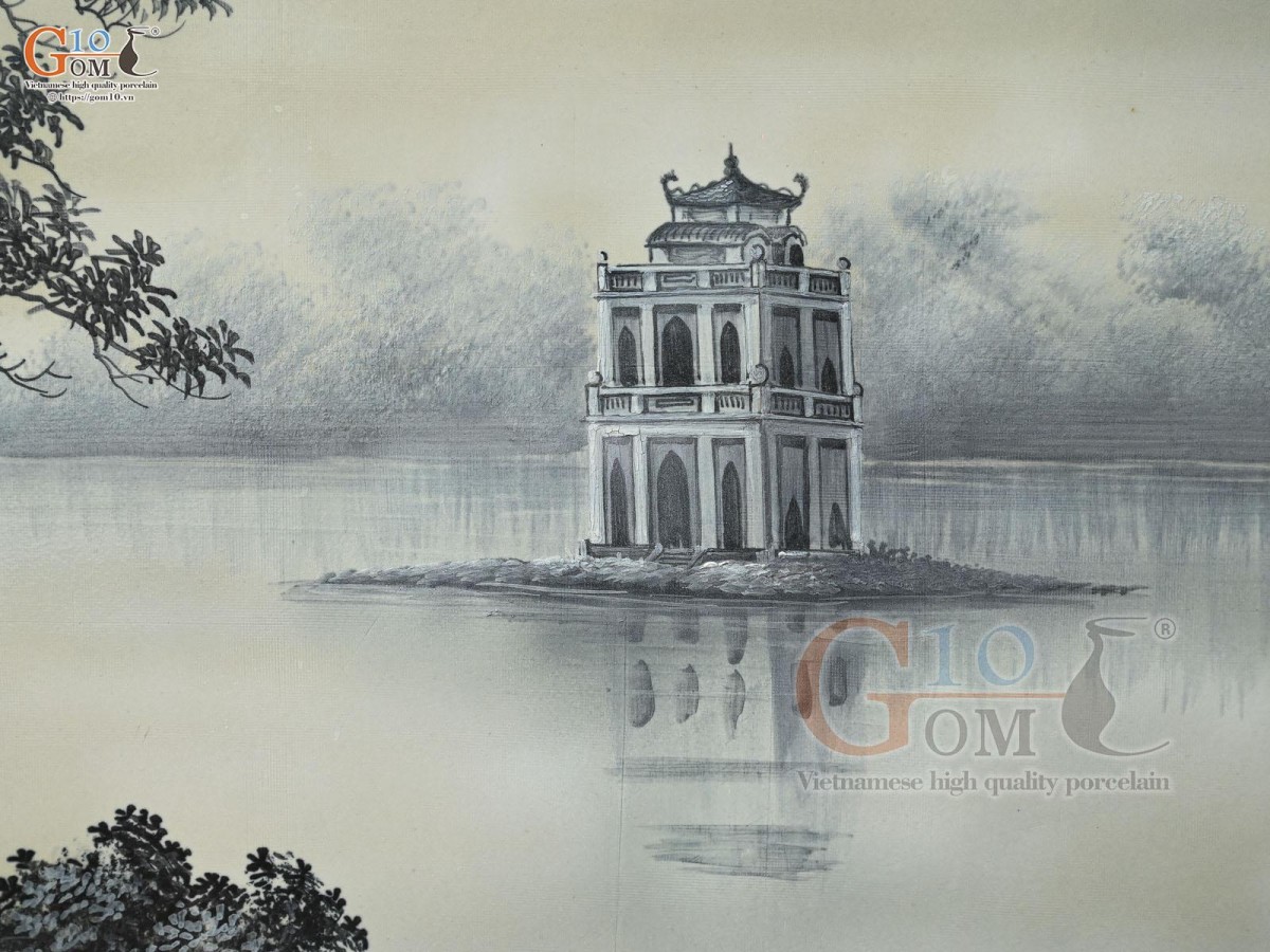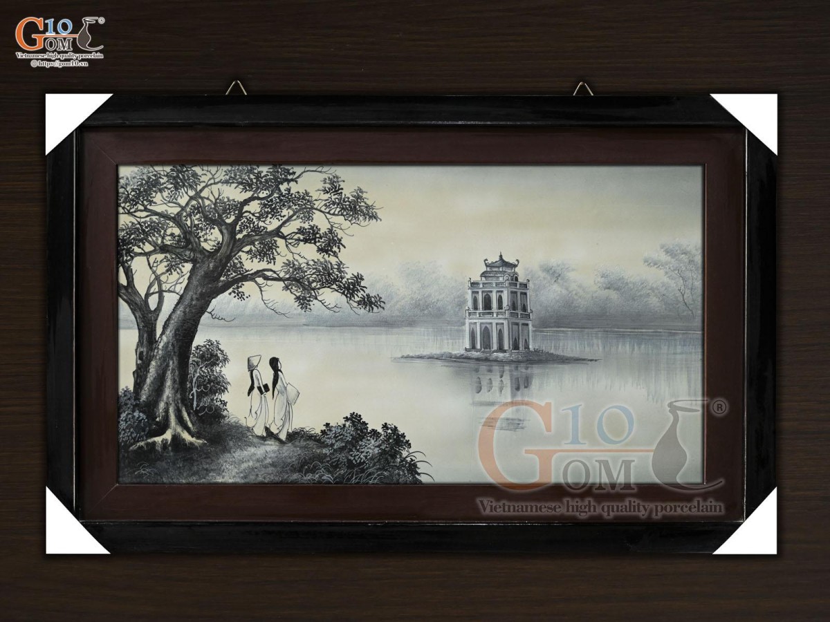 Tranh sứ cao cấp vẽ cảnh Chiều Bên Hồ, 60x90cm