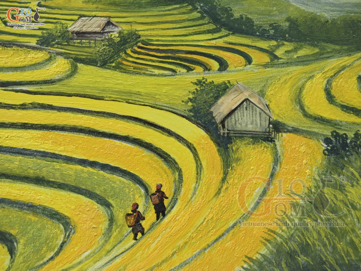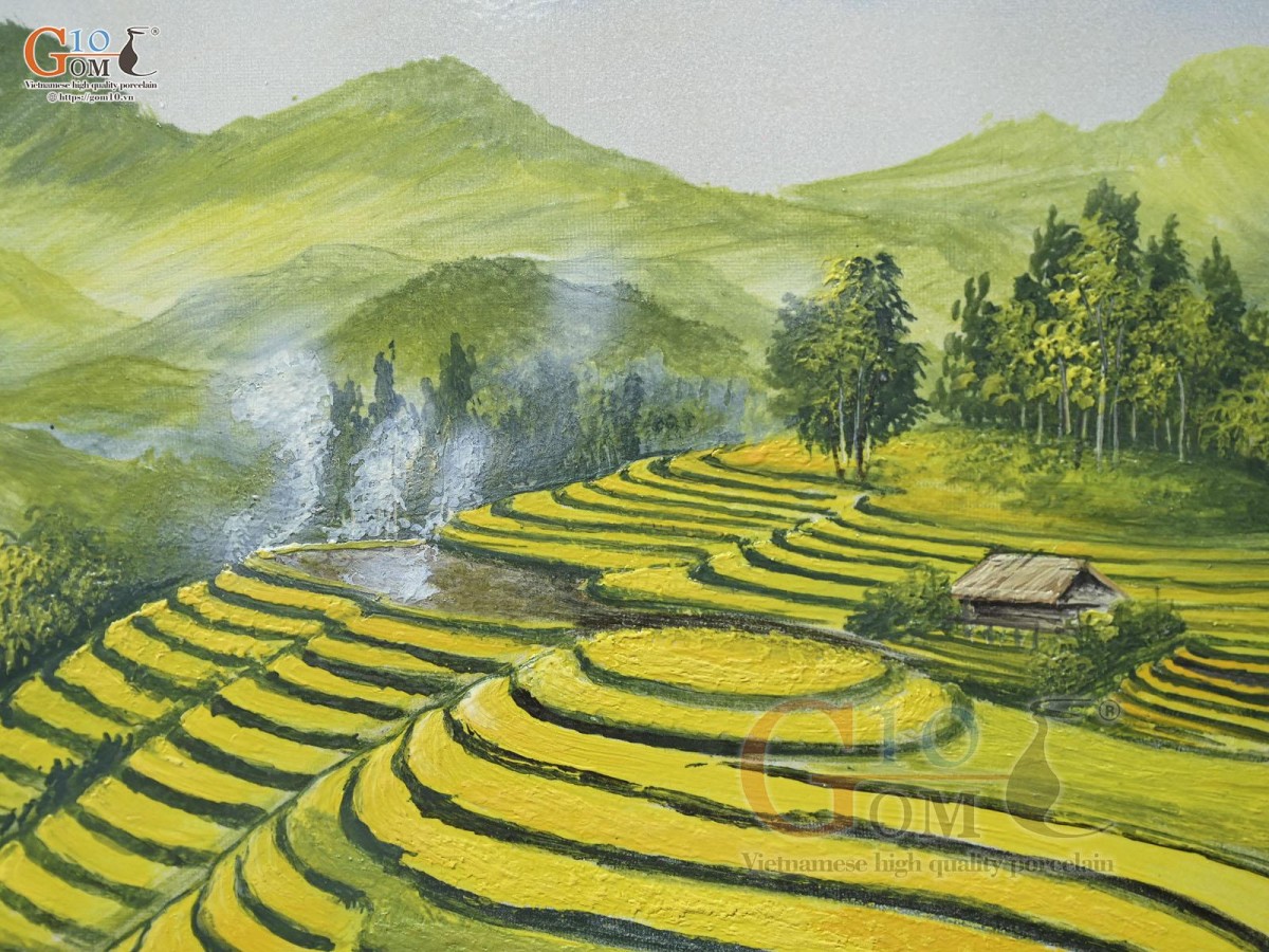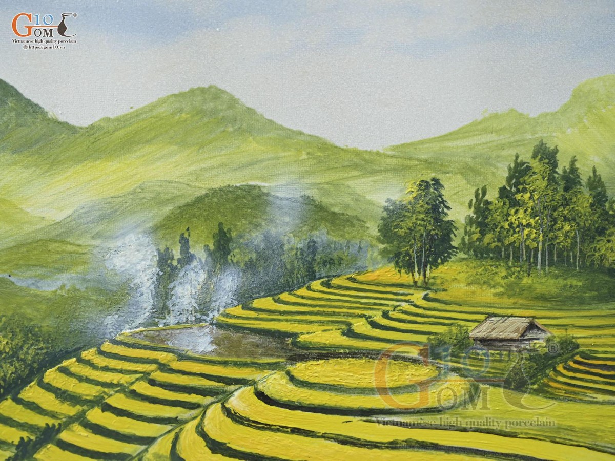 Tranh sứ cao cấp vẽ cảnh Ruộng Bậc Thang, 60x90cm