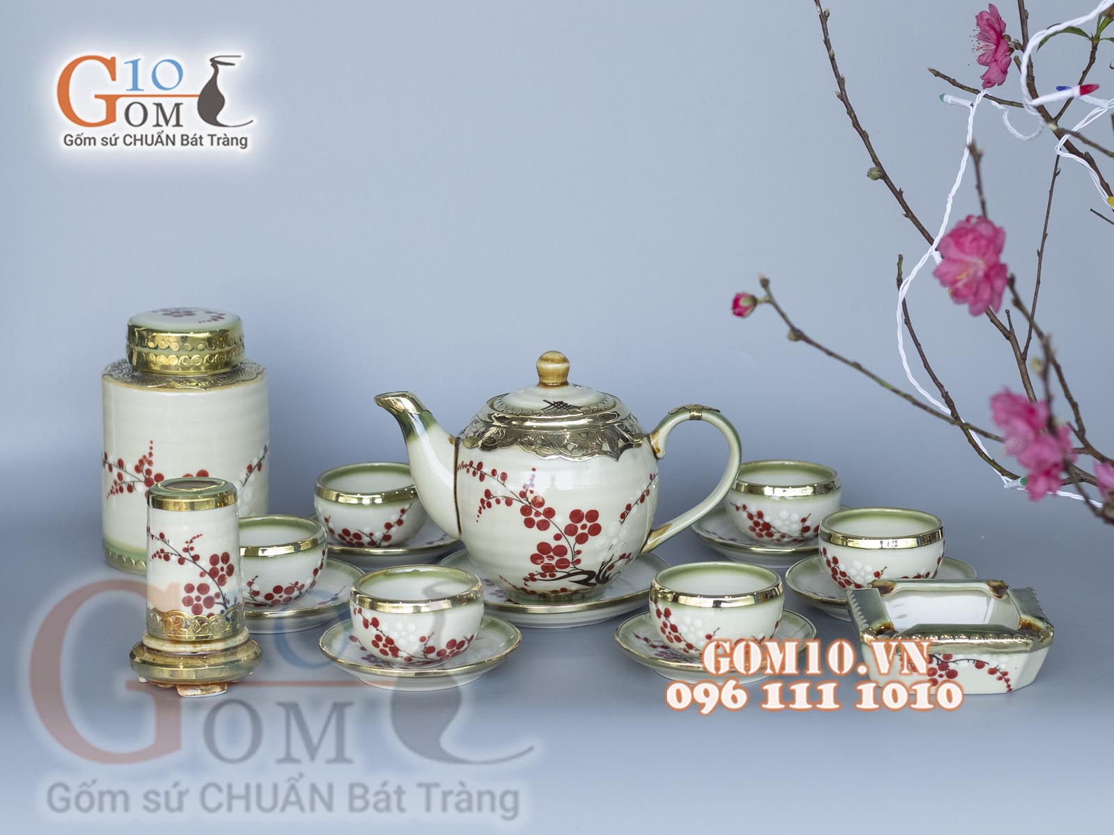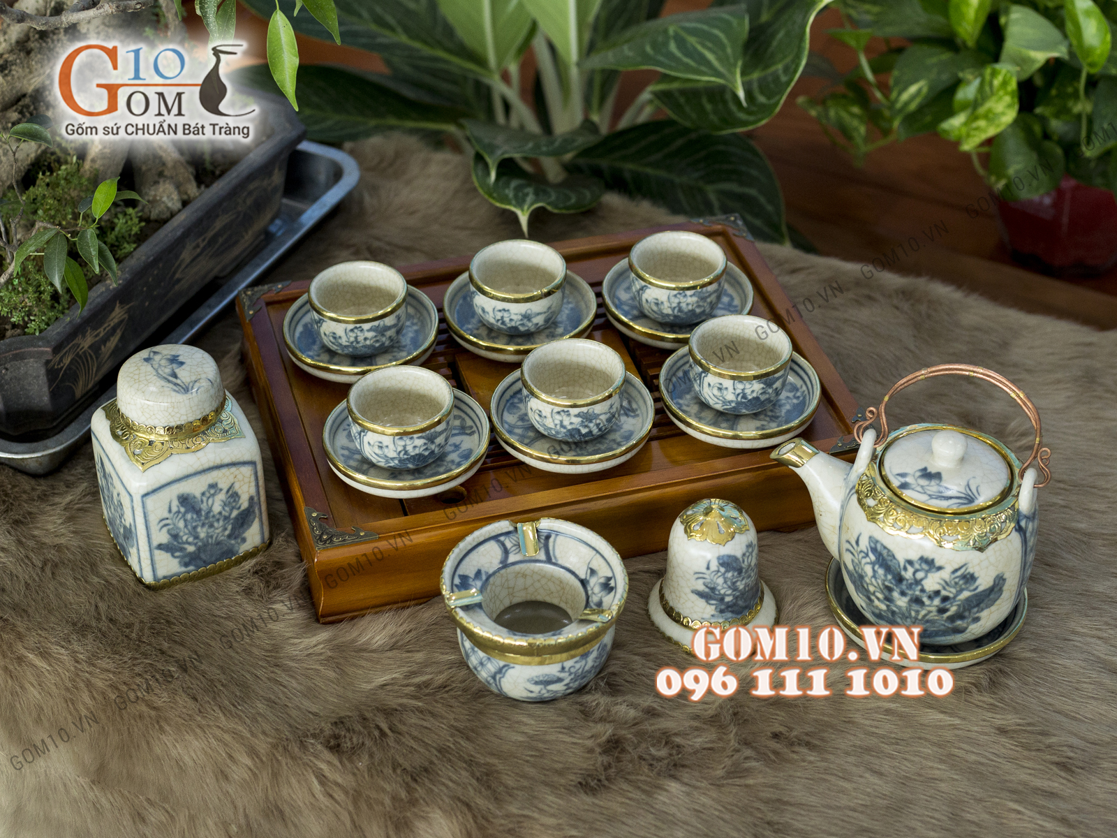- Các chi tiết: Một bộ ấm chén bọc đồng đầy đủ thường bao gồm 01 ấm trà - 06 chén trà - 07 đĩa ( hoặc khay đi kèm) & Bộ phụ kiện bằng gốm sứ Bát Tràng bao gồm: 01 hộp đựng trà, 01 hộp đựng tăm, 01 gạt tàn, 01 hộp đựng nước trà cũ…