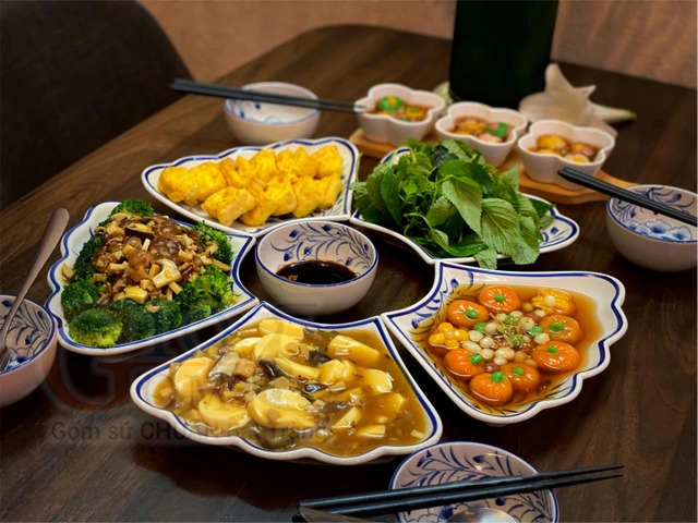 Ngược lại với những đĩa bánh mua sẵn đơn điệu thì việc tự chuẩn bị làm bánh và bày biện trang trí đã trở nên dễ dàng hơn với bộ đĩa sứ Bát Tràng. Bộ đĩa thường gồm 5 cánh giúp chúng ta dễ dàng bày biện các món cho phù hợp.