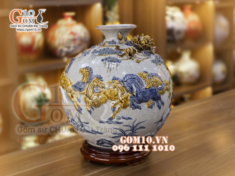 Để mua được Bình hút tài lộc Mã Đáo Thành Công nói riêng hay các mẫu bình hút lộc Bát Tràng nói riêng an toàn và đảm bảo chất lượng mời quý khách hàng đến với Gốm 10 - Gốm Sứ CHUẨN Bát Tràng. Tại đây chúng tôi có đầy đủ các mẫu bình hút lộc gốm sứ với các họa tiết, kích thước khác nhau, giúp bạn dễ dàng lựa chọn được một món đồ phong thủy ưng ý nhất để trang trí hoặc dùng làm quà tặng vô cùng ý nghĩa.