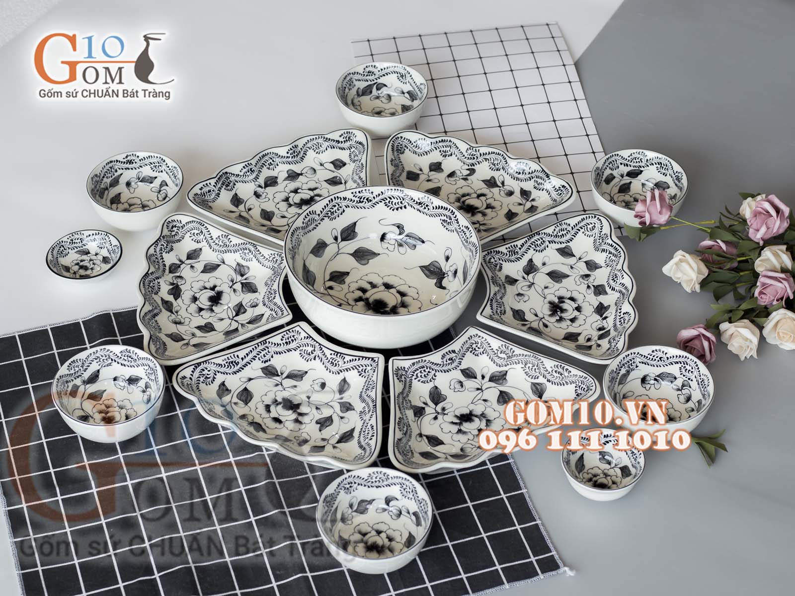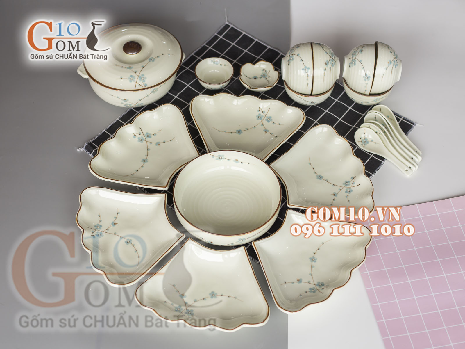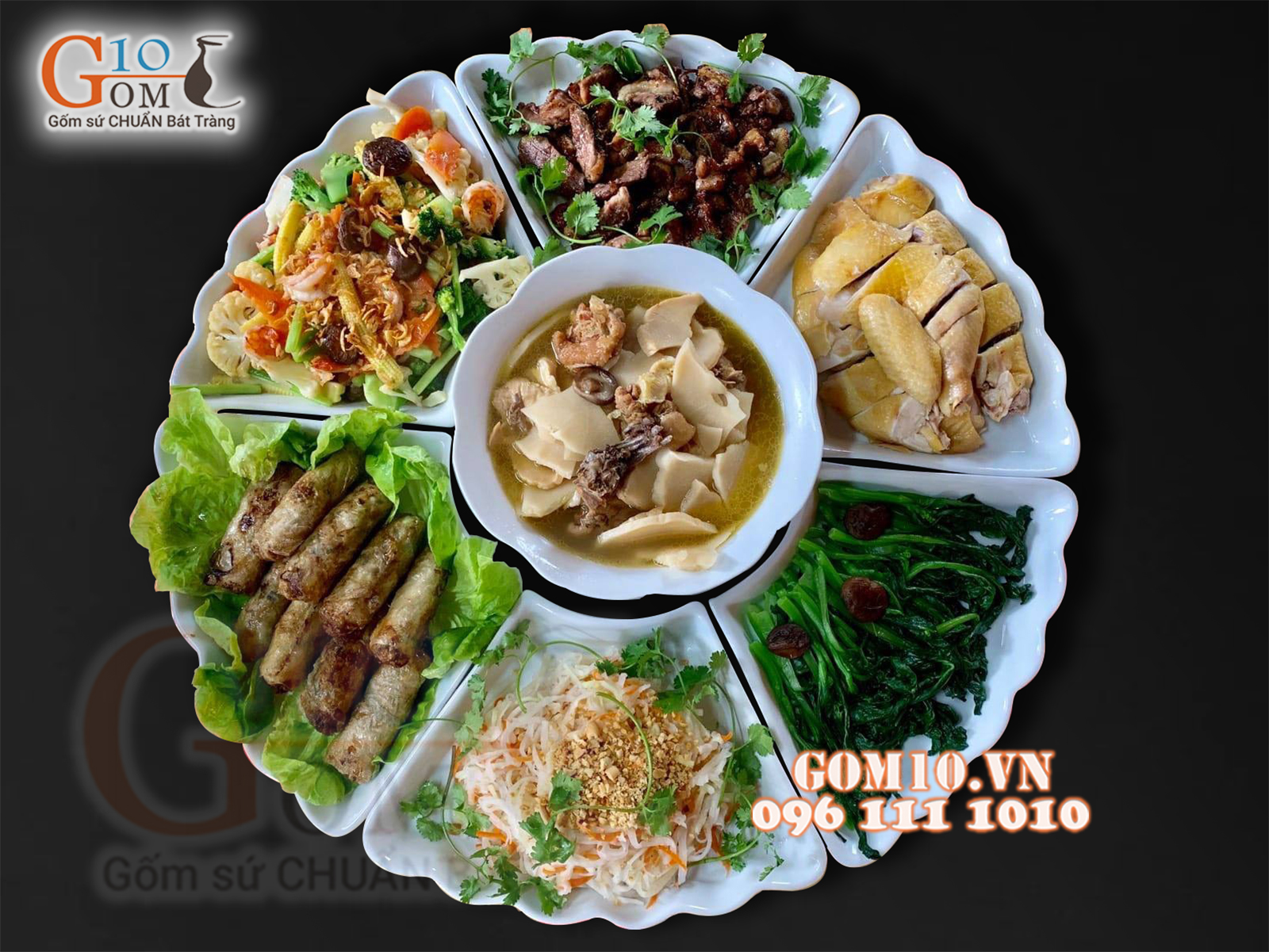 Với thiết kế lòng đĩa khá sâu, số lượng đĩa nhiều, bát tô tiện dụng ở giữa người nội trợ có thể thỏa sức bài trí đa dạng các món ăn, tăng thêm tính thẩm mĩ cho bữa cơm gia đình hay tiếp đãi khách.