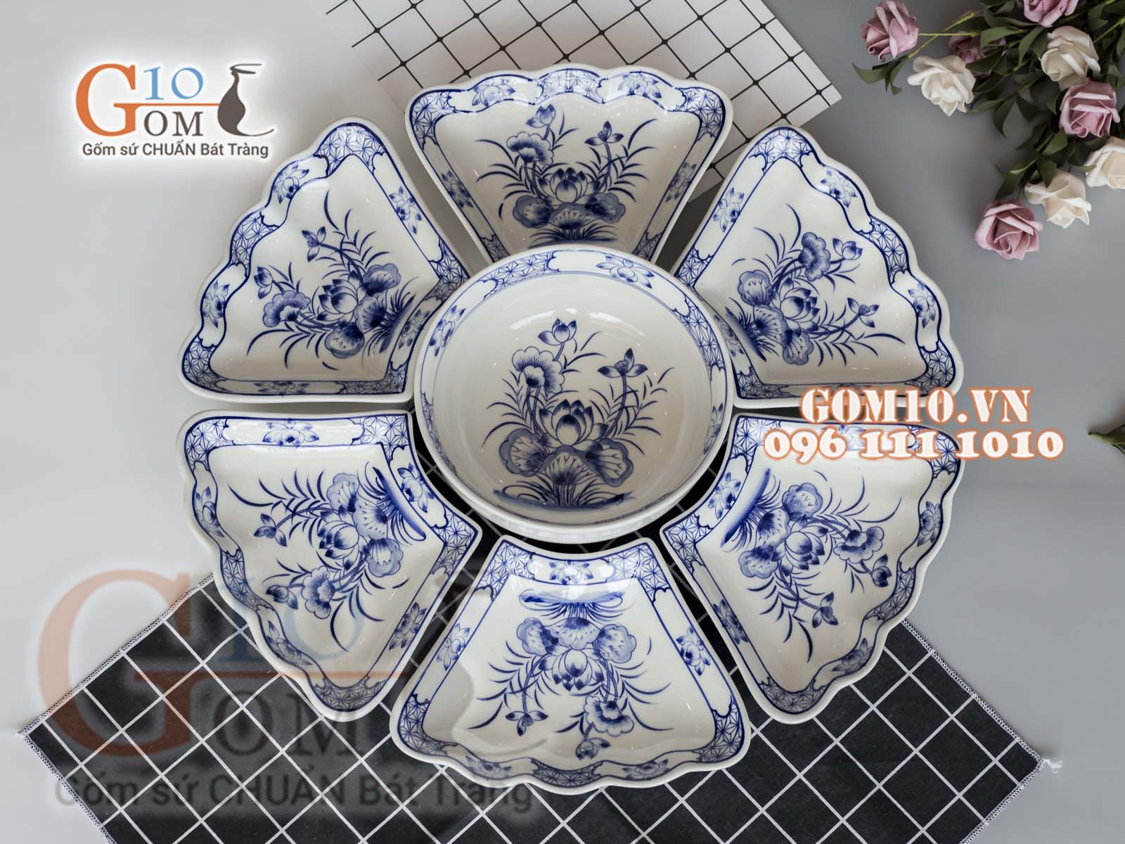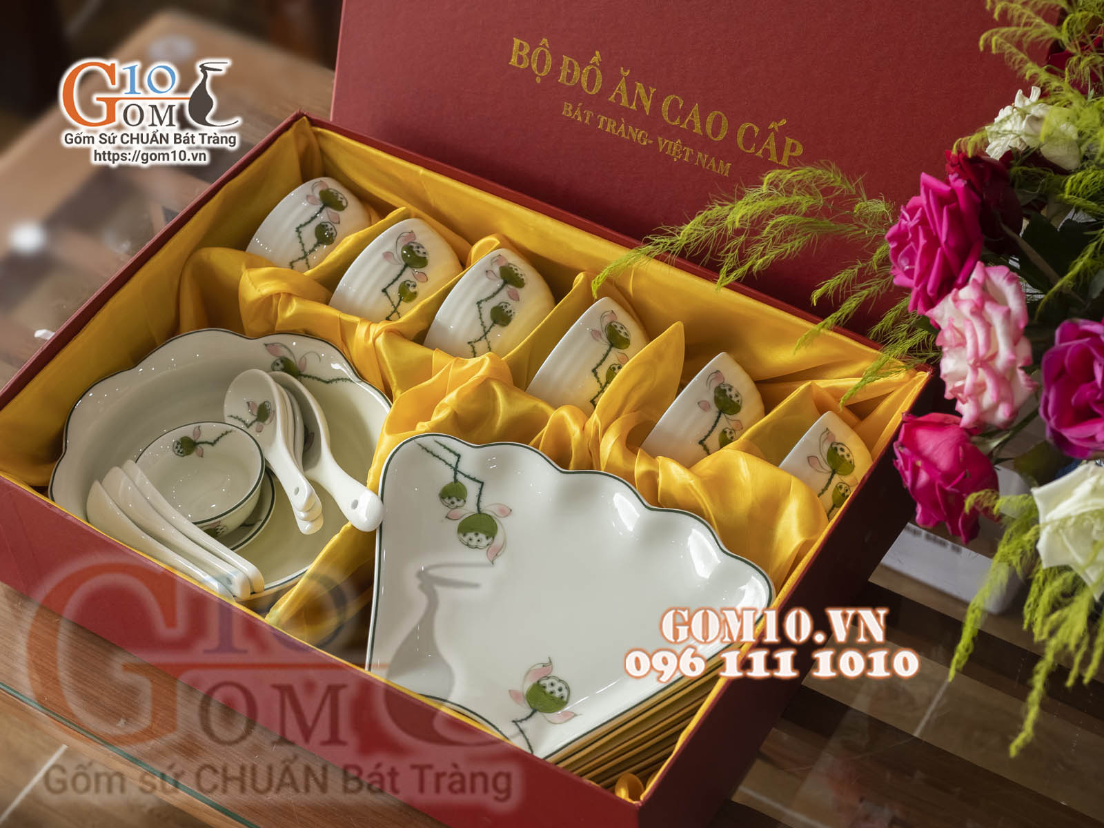 Hoa sen là “quốc hoa” của người Việt, mang đến sự thuần khiết, bình an trong cuộc sống. Bộ đĩa hoa mặt trời của Bát Tràng vẽ sen xanh lại là một sản phẩm thuộc dòng bát đĩa cao cấp nên rất phù hợp làm quà tặng trong các dịp quan trọng.