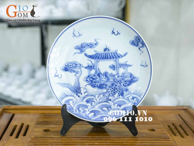 Đĩa trang trí Cá Chép hóa Rồng là vật phẩm trang trí đắt giá của tác phẩm gốm sứ Bát Tràng. Không chỉ đẹp bởi vẻ bên ngoài khi được các nghệ nhân gốm khéo léo phối hợp màu sắc cùng với đường nét họa tiết sắc sảo tạo nên một chiếc đĩa trang trí sống động như chính chúng ta đang được tận mắt nhìn thấy chú cá chép hóa rồng mà trước nay chỉ được nghe trong truyền thuyết ….