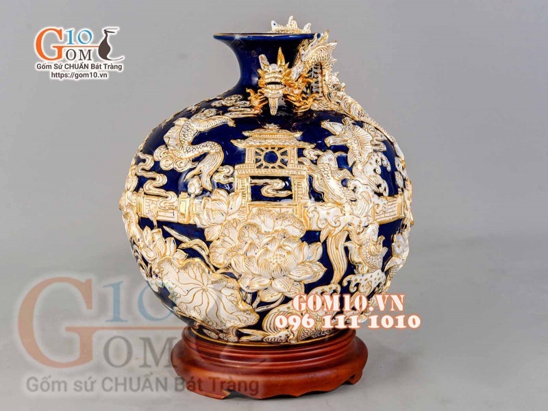 Bình hút lộc vẽ cá chép hóa rồng được các nghệ nhân làng nghề gốm sứ làm bằng thủ công 100%. Sản phẩm bình hút lộc vẽ cá chép hóa rồng, men bóng được kết hợp với màu sắc vàng tươi, nóng làm nổi bật dáng vẻ hiện đại, bố cục hài hòa, trang nhã.