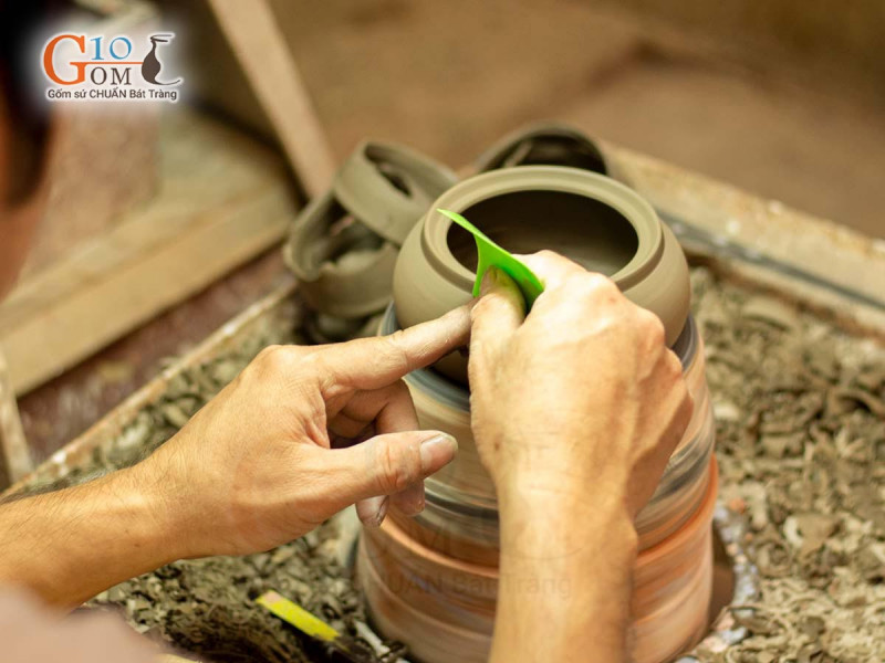 Quai ấm được cắt sửa cẩn thận, loại bỏ những phần đất dư thừa trong quá trình đổ khuôn, cắt gọt 2 đầu để có thể gắn vào ấm và không tạo ra độ nứt giữa các bộ phận.