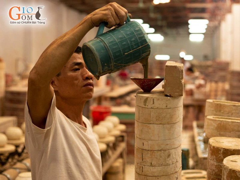Sau khi có nguyên liệu, chúng ta sẽ đổ hỗn hợp nguyên liệu đó vào khuôn ấm trà, tạo hình từng bộ phận của ấm trà và tách trà.