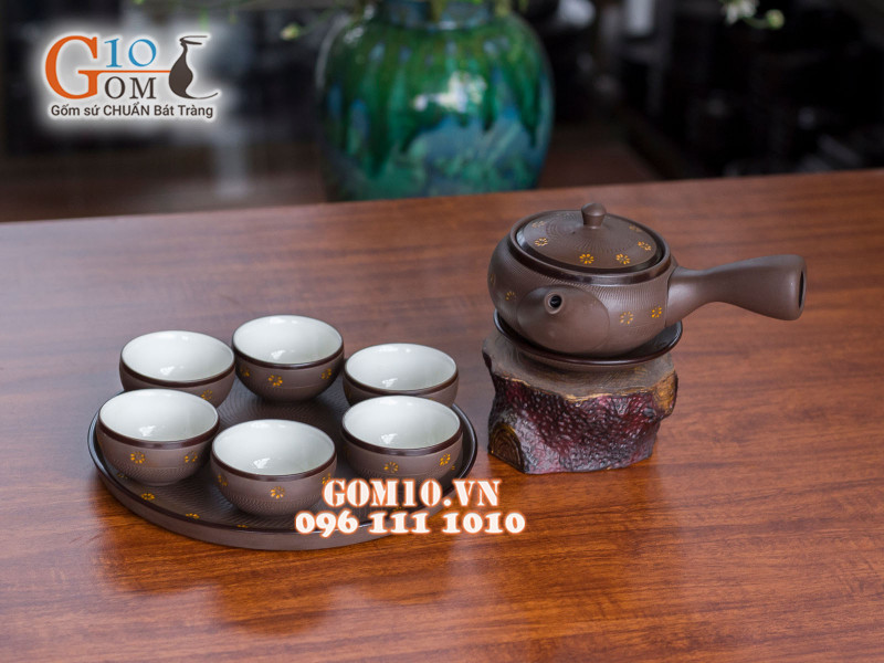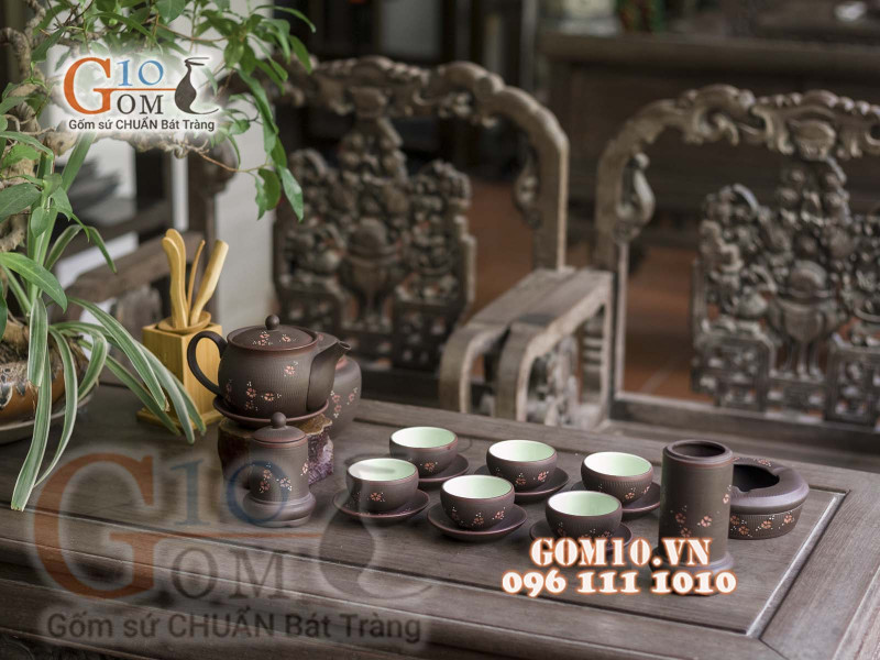 1. Bộ trà gốm Hồng Sa cao cấp Bát Tràng