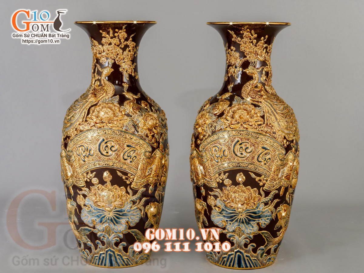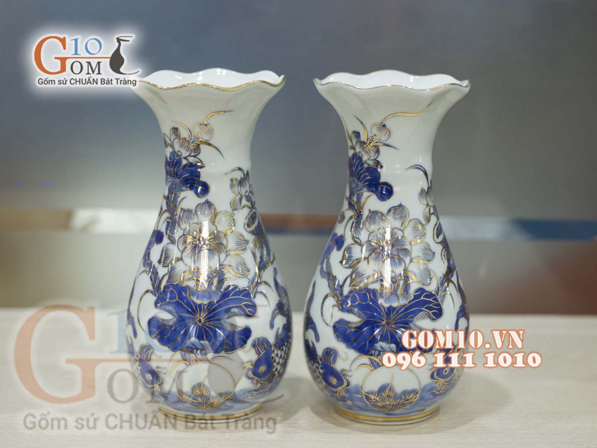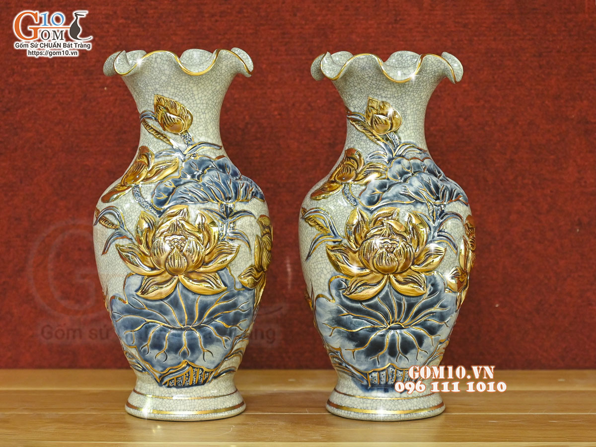 Để tạo điểm nhấn cho bình hoa, các nghệ nhân đã vẽ vàng 24k xung quanh họa tiết bằng đôi bàn tay điêu luyện và đầy tính nghệ thuật của mình. Đây là cách tạo ra sự mới lạ đồng thời tăng thêm sự trang trọng, linh thiêng cho dòng lọ hoa thờ cúng. Chúng cũng có nhiều kích thước và kiểu dáng khác nhau phù hợp với nhiều kích thước bàn thờ như hiện nay.