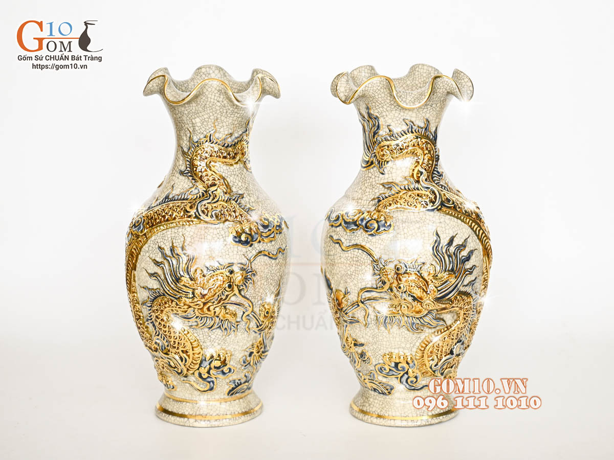 3.2 Bình hoa bàn thờ men rạn đắp nổi