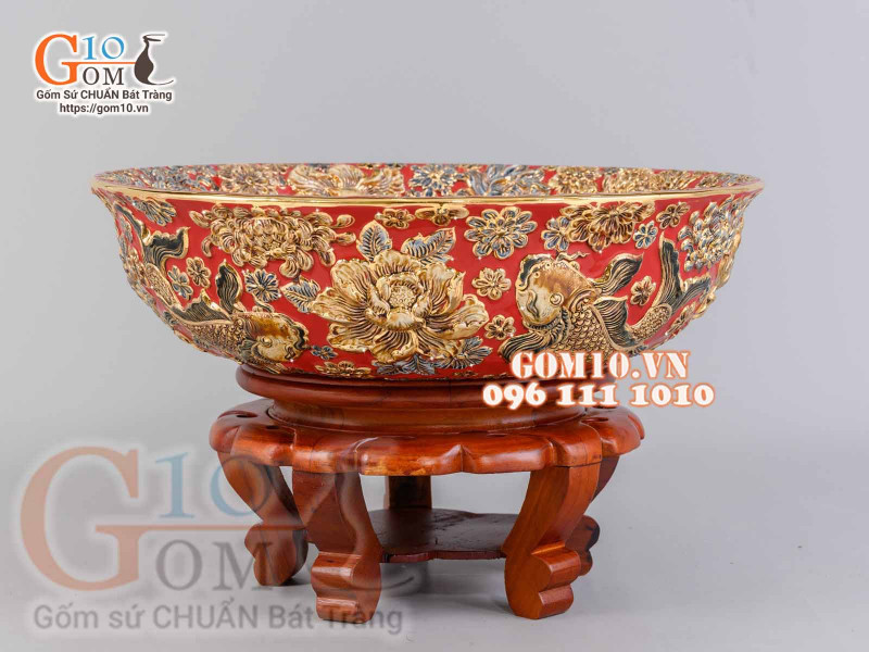 Bát thả hoa Phú Qúy đắp nổi,màu đỏ 4. Cách chọn mua bát thả hoa ban Thần Tài đẹp, cao cấp, giá hợp lý