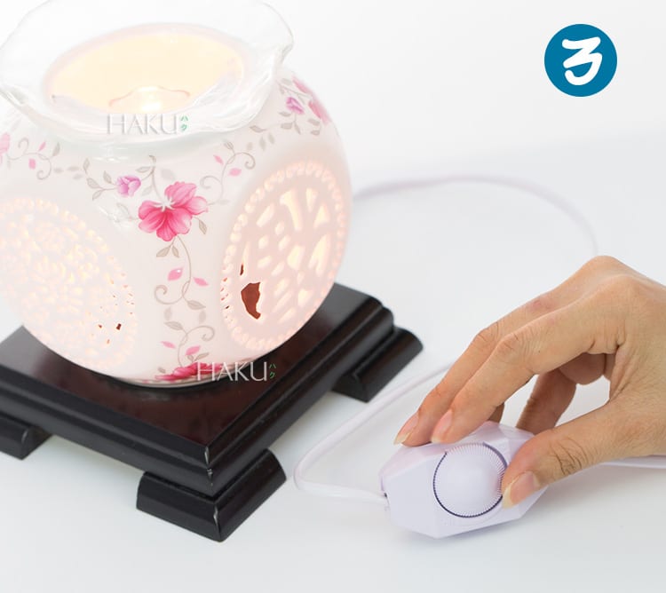 Khi nước bắt đầu nóng, cũng là lúc tinh dầu bắt đầu được khuếch tán ra không khí, bạn có thể điều chỉnh chiết áp để ánh sáng của đèn xông tinh dầu được dịu đi.