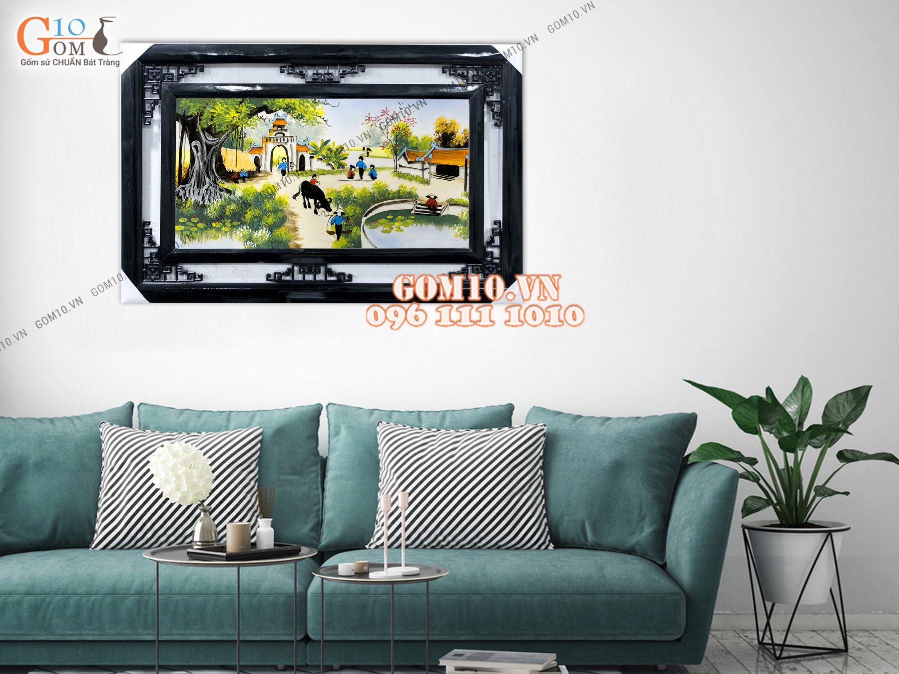 Tranh sứ vẽ cảnh đồng quê - Treo tranh bộ nên chú ý treo tranh theo thứ tự. Ví dụ bộ tứ quý: miêu tả 4 loài cây đại diện cho 4 mùa Xuân - Hạ - Thu - Đông, tương ứng với Mai - Trúc - Cúc - Tùng. Treo theo thứ tự để người nhìn không bị rối não và tạo cảm hứng cho người ngắm tranh.